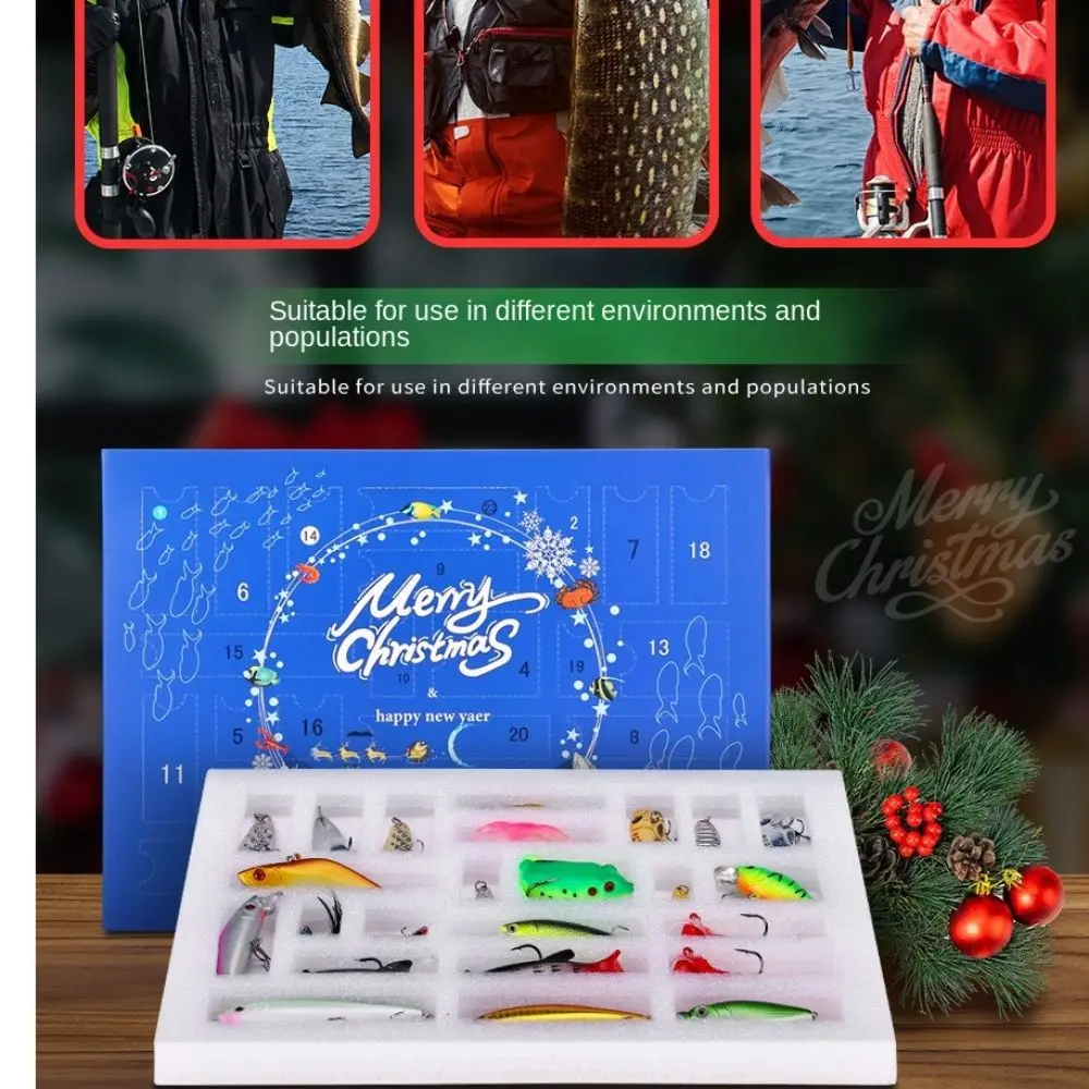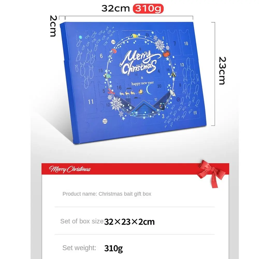Puntos destacados: 1. Aumenta tu éxito en la pesca con caña: estimula tanto los peces de agua dulce como los de agua salada con señuelos de ojos 3D elaborados por expertos. Cuidadosamente seleccionado y diseñado específicamente, nuestro calendario de adviento se adapta a sus preferencias de pesca. Disfruta de una experiencia de pesca versátil como ninguna otra 2. Emoción diaria: abra un nuevo artículo de pesca todos los días con El Calendario de Adviento de Pesca 2024, perfecto para pescadores de todos los niveles y adaptado para todos, desde adolescentes hasta pescadores experimentados, llevar la emoción de los calendarios de Adviento de vacaciones al mundo de la pesca 3. Emoción todos los días: Con 24 Señuelos de Pesca diferentes, nuestro calendario de Adviento de pesca 2024 garantiza 24 días de emoción mientras descubres un nuevo tesoro cada día, lo que lo hace perfecto para pescadores experimentados o principiantes 4. Escena aplicable: con su increíble rendimiento en agua salada y bien mantenida, y todos los niveles de agua, El Calendario de Adviento de pesca 2024 es perfecto para todas sus necesidades de pesca. Disfrute de la emoción de la pesca desde cualquier lugar con este artista multiusos 5. Perfecto como regalo: trate a sus amigos y familiares entusiastas de la pesca con un calendario de adviento de pesca 2024. Cada día antes de Navidad, recibirán un regalo especial de pesca con caña y una tarjeta festiva, lo que lo convierte en el regalo perfecto para cualquier pescador. Descubra la alegría de pescar con nuestro calendario de Adviento de caja de señuelos de pesca 2024. Seleccionada cuidadosamente durante 24 días, cada caja se abre para revelar un nuevo artículo de pesca. Especificación. Nombre: Calendario de Adviento de aparejos de pesca Tamaño del producto: aproximadamente 32x23x2cm/12,6x9,06x0,79 pulgadas Peso: 310g Lista de paquetes: Calendario de Adviento de aparejos de pesca * 1