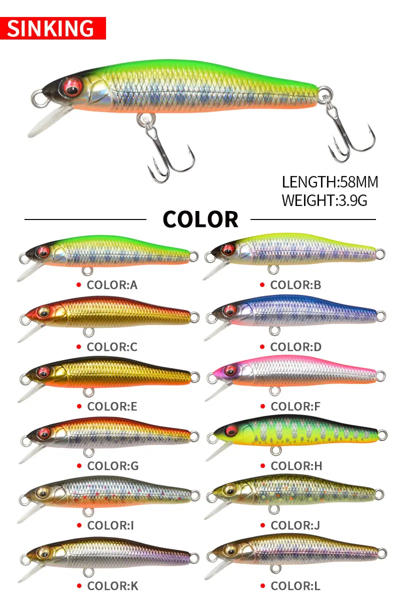 Caliente 58Mm 3,9G Mini Señuelos de Pesca de pececillo hundido Jerkbaits Peche cebo Artificial Wobbler señuelo para pesca de carpa lubina de trucha