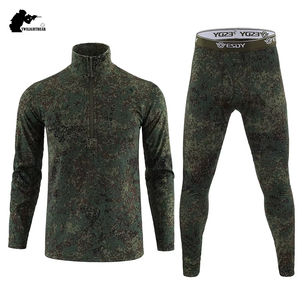 Calzoncillos largos de camuflaje de invierno para hombre, ropa interior táctica Airsoft, deportes al aire libre, montar, Camping, conjunto de ropa interior térmica A2F154