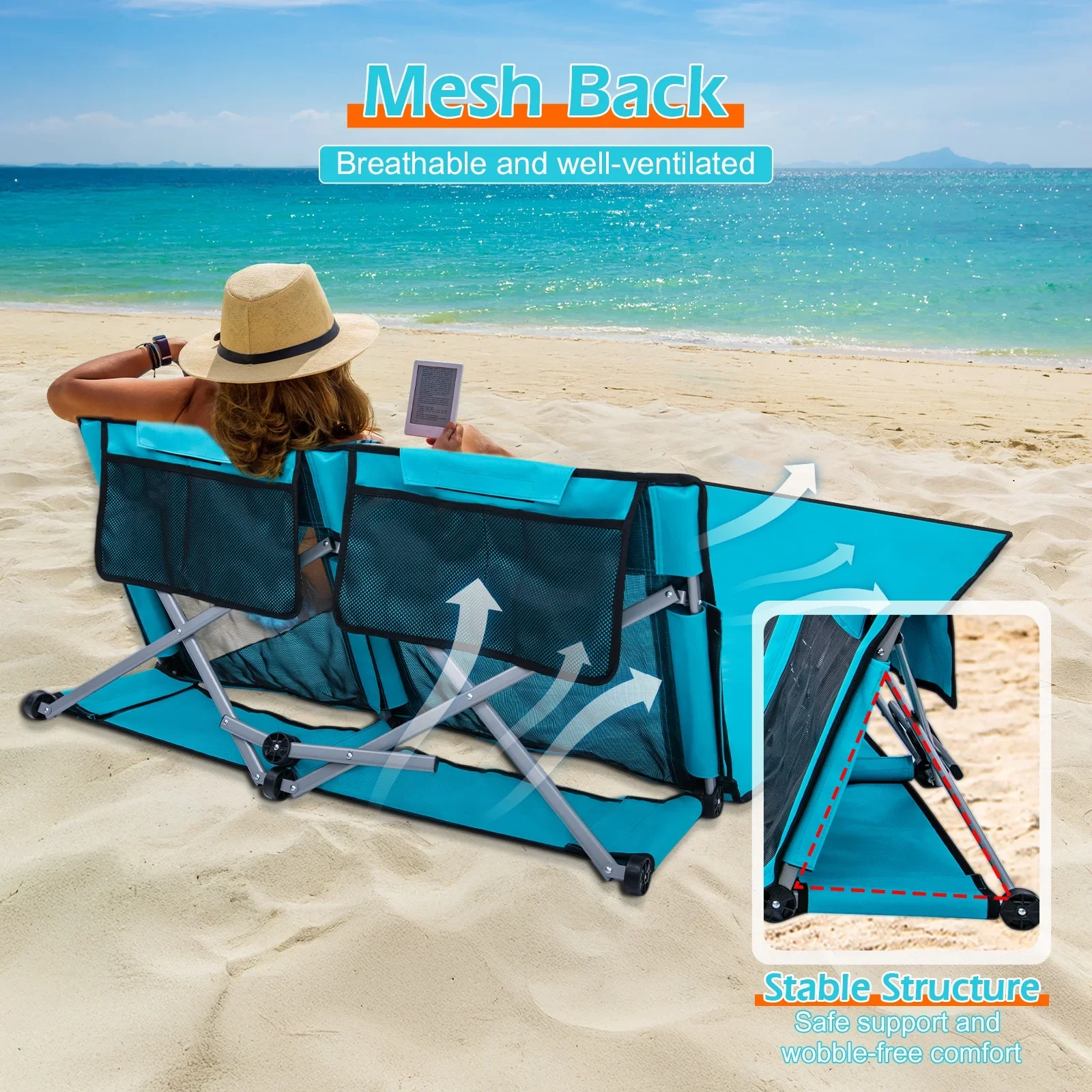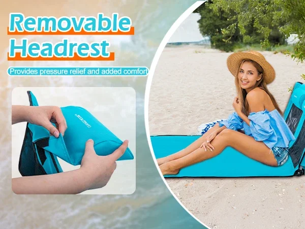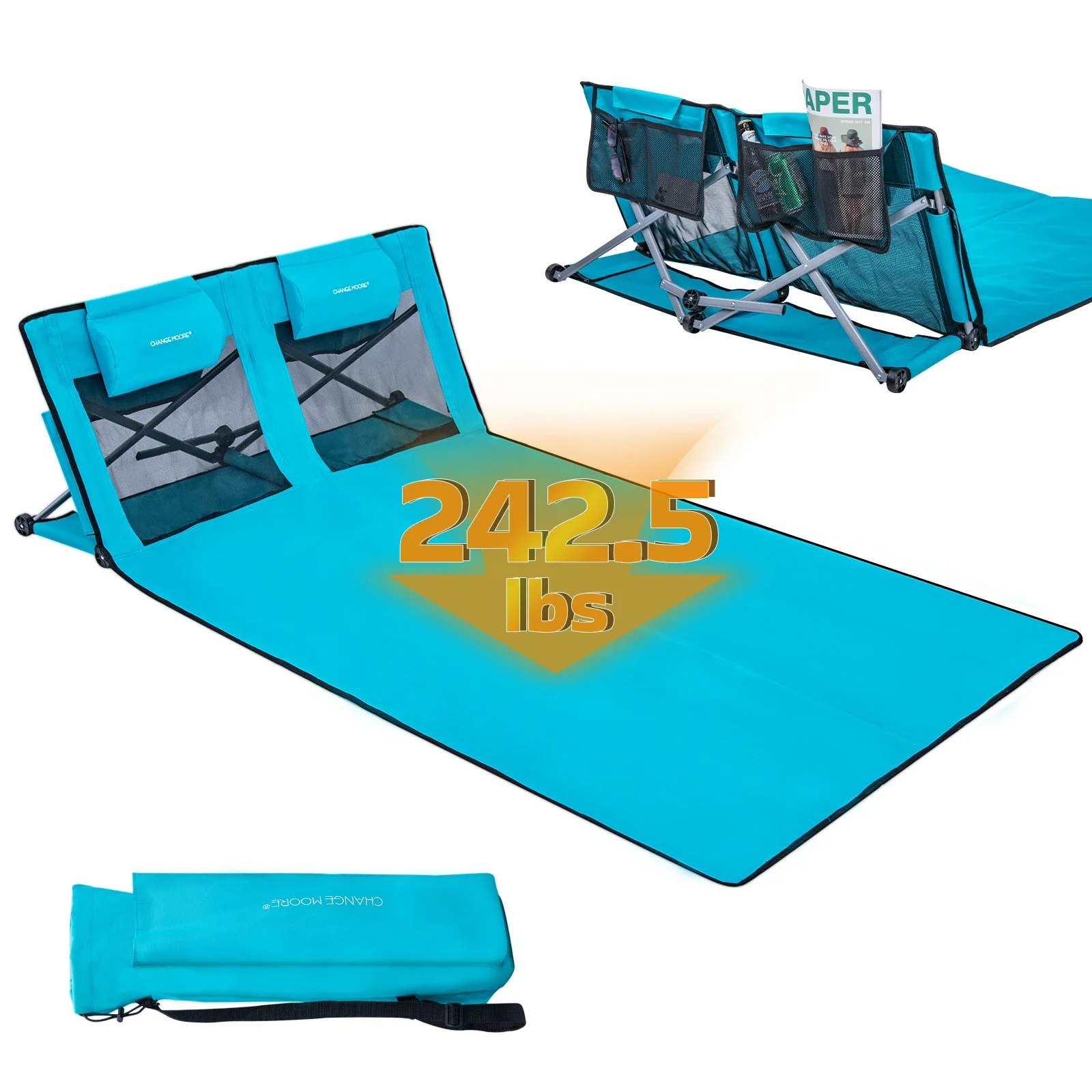 Cama de playa plegable Goture con reposacabezas, cama portátil ultraligera para exteriores, reclinable, para viaje, cama plegable para playa