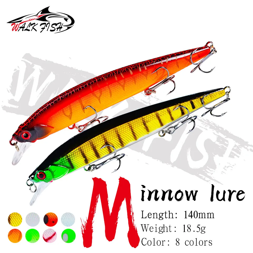 Caminar peces 1 piezas realista Wobbler señuelo de pesca 3D ojos 14cm/18,5g Minnow Artificial cebo duro pesca flotante atraer