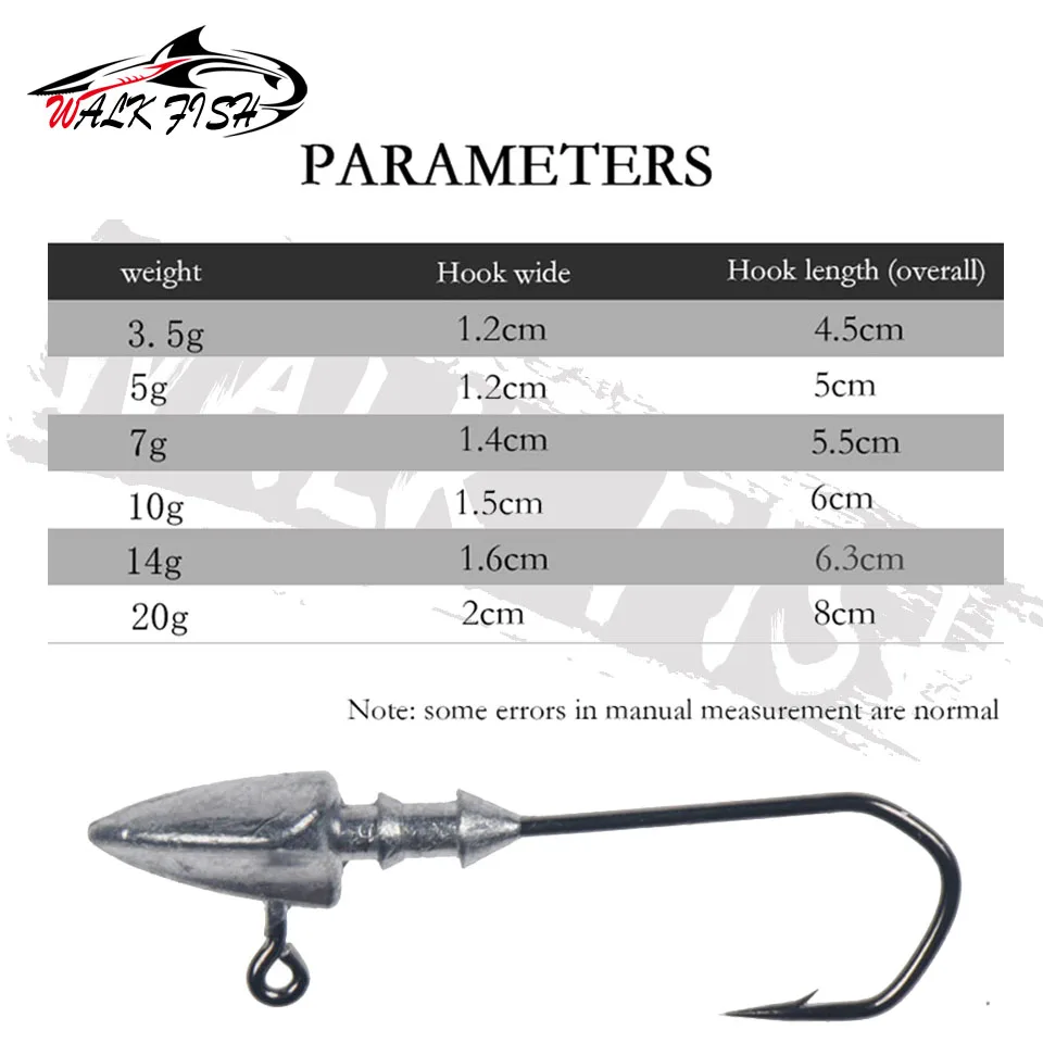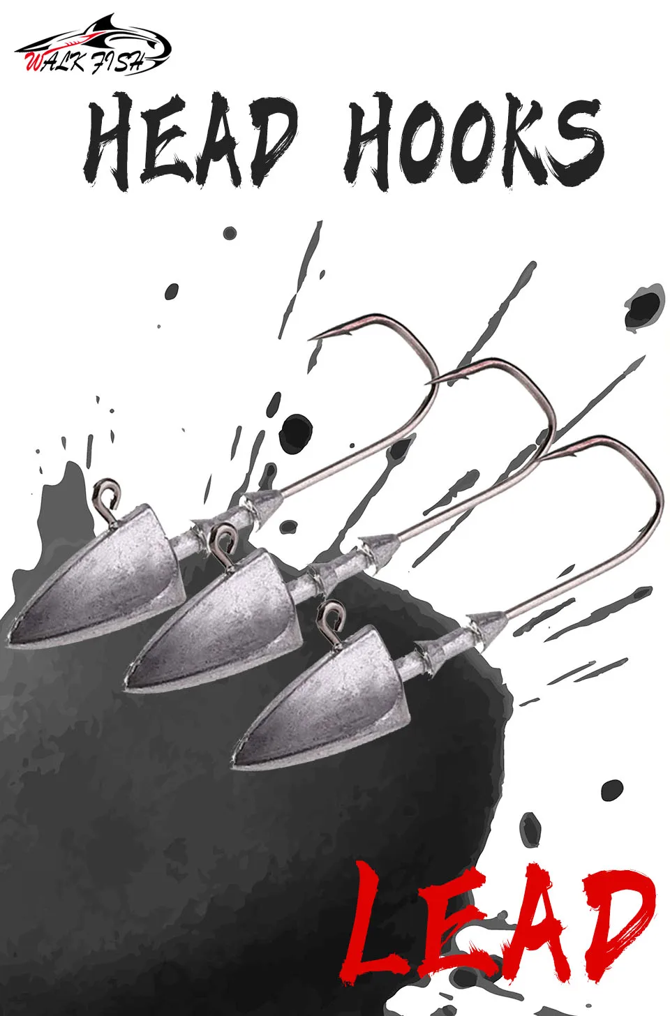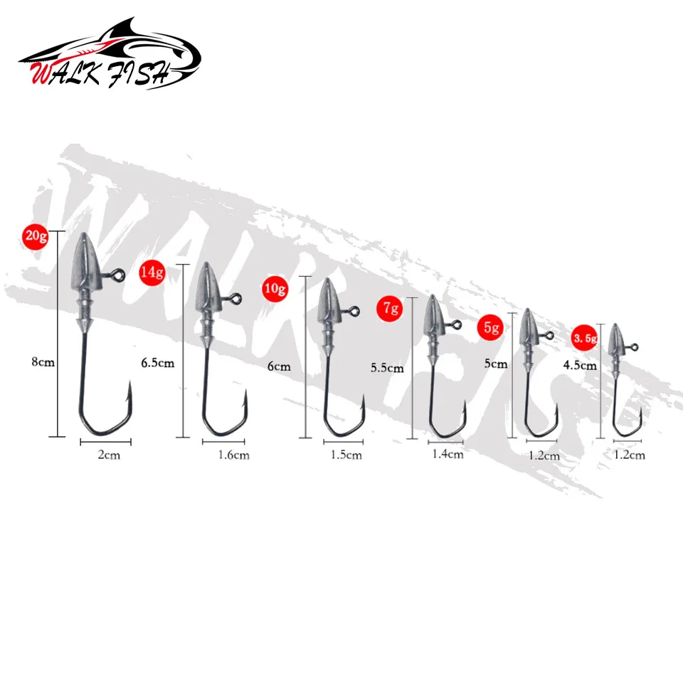 Caminar pescado 5 unids/lote cabeza del triángulo de la ganchos 3,5g 5g 7g 10g 14g 20g tipo de barco gancho de pesca de gusano plantilla señuelos gancho anzuelo con cabeza plomada