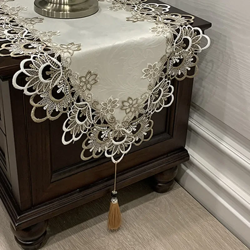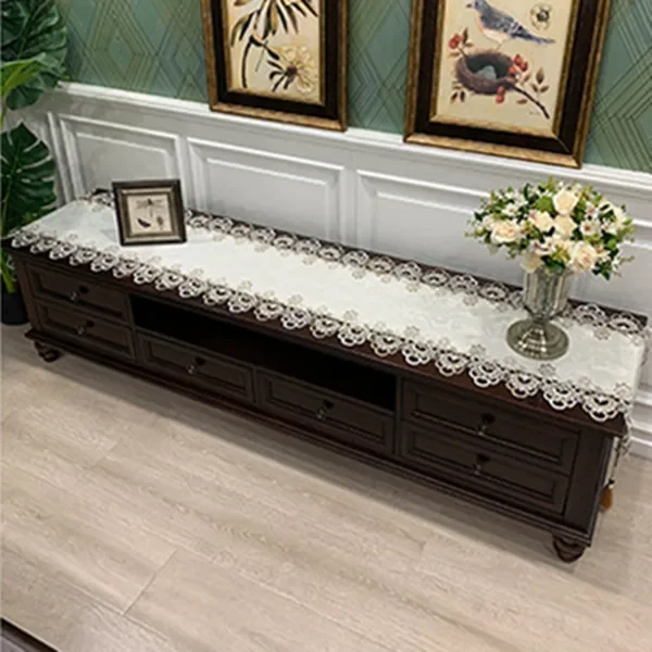 Camino de mesa bordado de encaje, mesa de comedor de tela y mesa de centro, mueble de TV, zapatero, paño de toalla a prueba de polvo