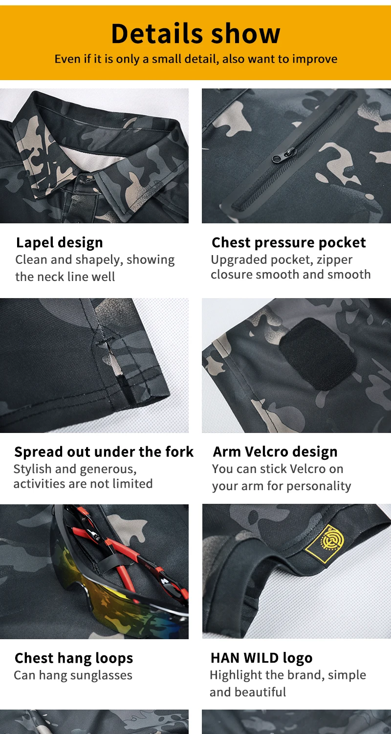 1.Ligero/absorbe el sudor/transpirable/altamente elástico 2.Resistente a las arrugas/secado rápido/fácil de limpiar 3.No encoge/No se decolora/resistente al desgaste 4.Cremallera adhesiva impermeable sin costuras 5.Velcro en ambos lados del brazo. 6.Diseño colgante en el pecho