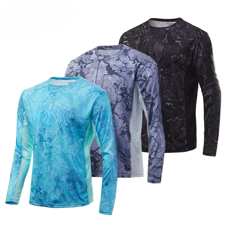 Camisas de pesca FPS 50 +, ropa de pesca de rendimiento de poliéster que absorbe la humedad, camisas de pesca sublimadas con ventilación de manga larga para hombres