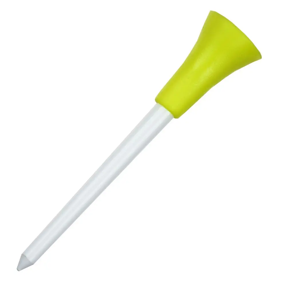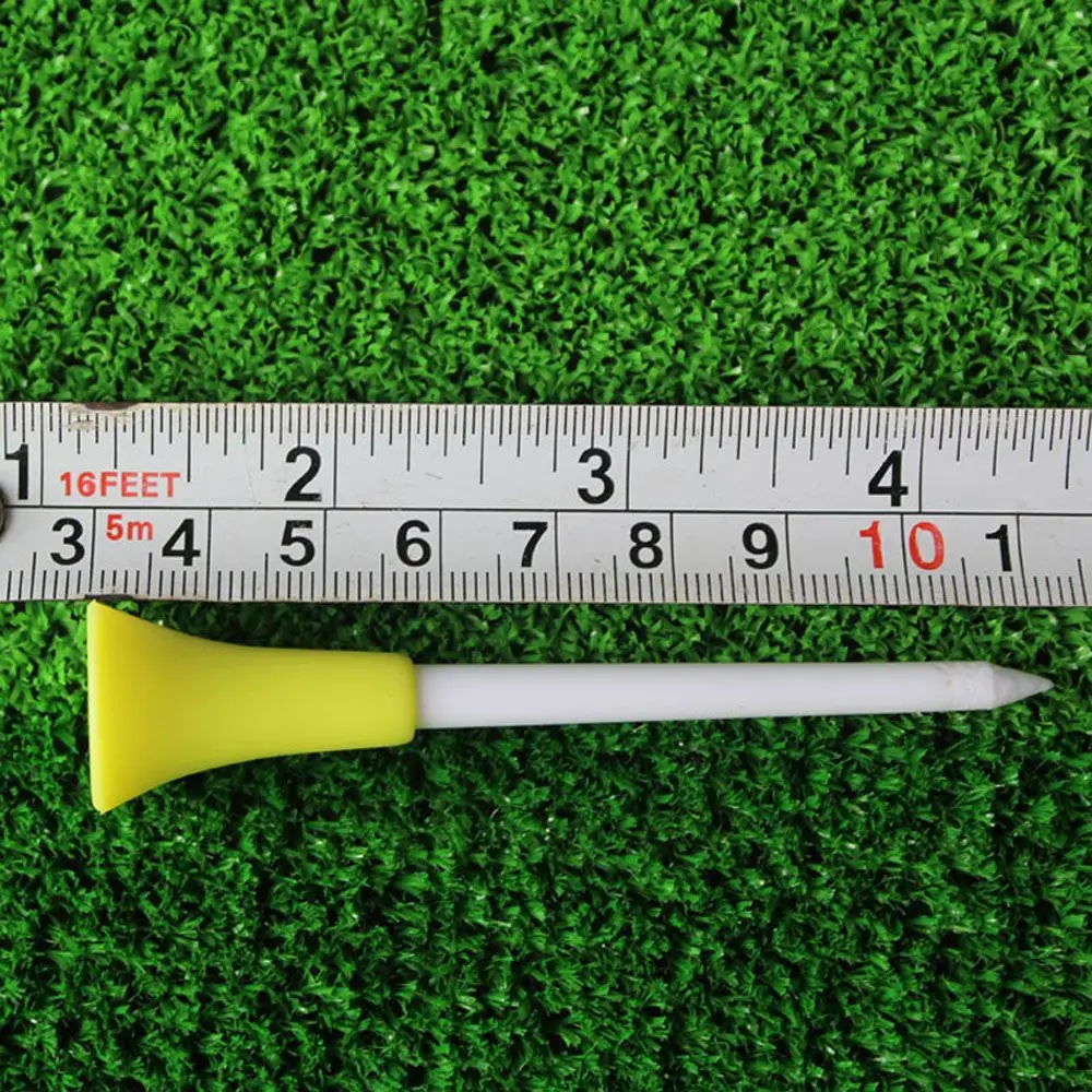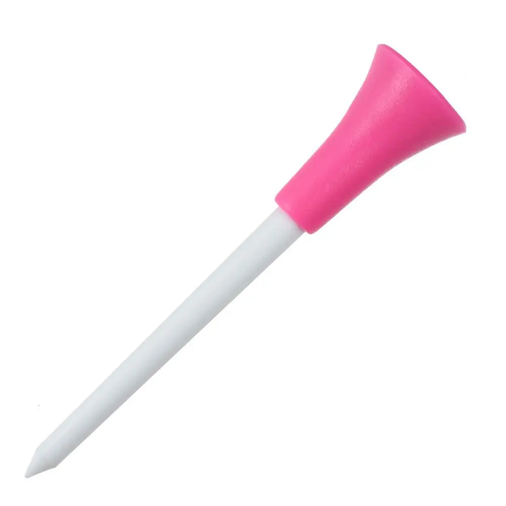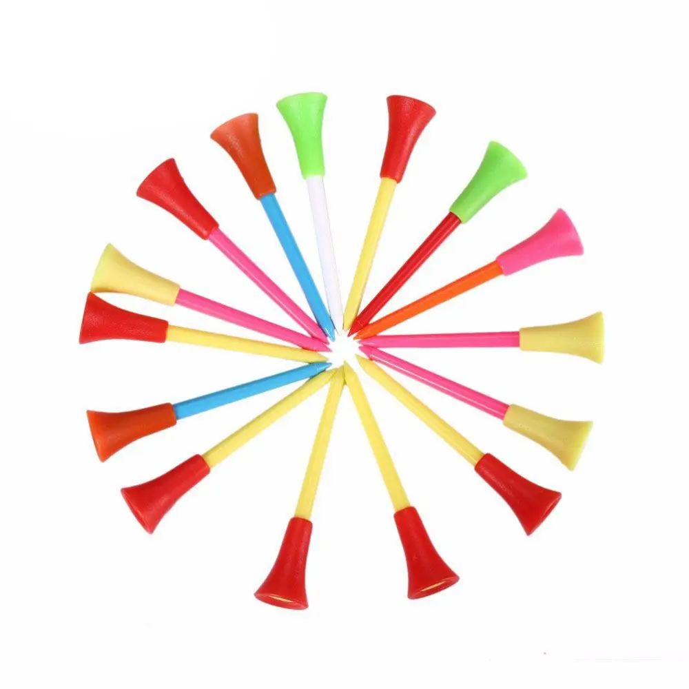 Material: plástico + goma Longitud: 83mm/3,3 in Tamaño del paquete: 18*13*4cm/7,1*5,1*1,6 in Peso del paquete: 180g/6,3 oz Lista del paquete: 50 * Tee de golf de plástico de 83mm de largo con parte superior acolchada de goma. Multicolor y duradero. Maravillosos equipos para los amantes del golf.