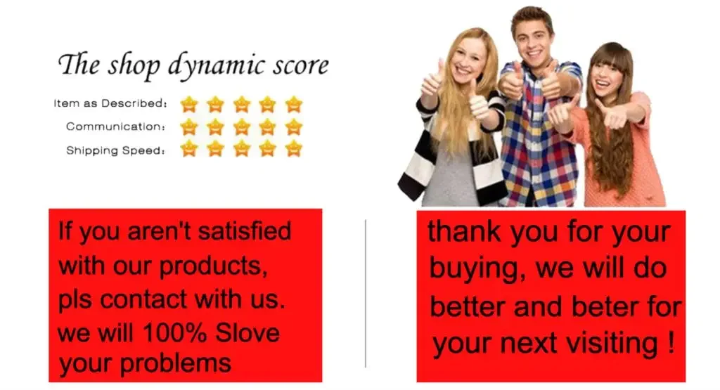 Su satisfacción y comentarios positivos son muy importantes para nosotros. Deja un comentario positivo y 5 estrellas si estás satisfecho con nuestros artículos y servicios. Si tiene algún problema con nuestros artículos o servicios, no dude en contactarnos primero antes de dejar un comentario negativo. Haremos todo lo posible para resolver cualquier problema y brindarle el mejor servicio al cliente.