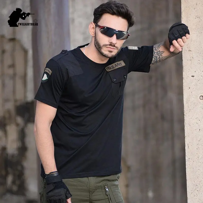 Camisetas de verano para hombre, camisetas de manga corta 4XL, camisetas informales de algodón con bordado militar, ropa para hombre, camiseta de gran tamaño A2F7013