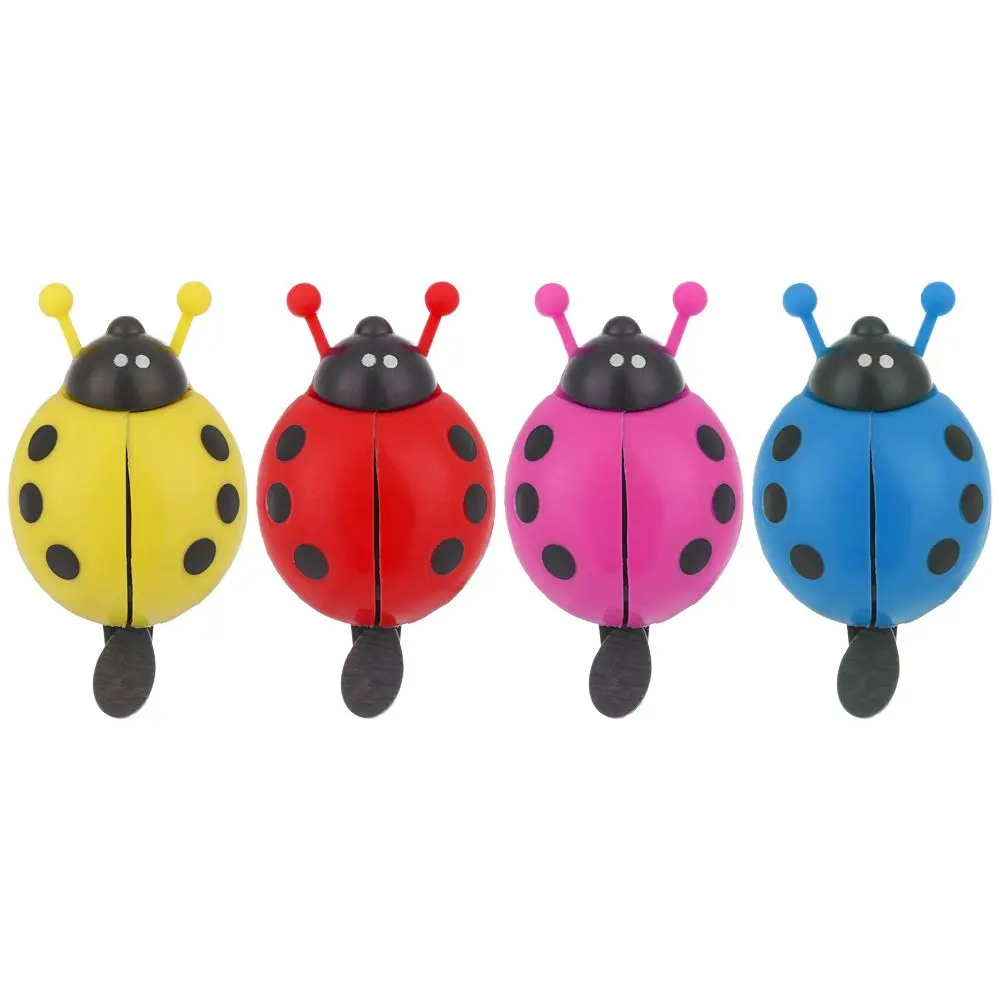 New Kids Bike Bell Bicycle Boys Girls Novelty Ladybird Bug Design Cute 100% Brand New and High Quality Unique design Color: red, blue, pink, yellow Material: Plastic Size: 9x5x4.5cm Installation diameter: 22cm Features: * Very cute and amazing. * Great for your kids. * Mount to handlebar. * Easy to set on. * Press the antenna to open the wings. * Gives a clear sound , easy to use. * The bell sound is clear and melodious Package Content: 1x Ladybird Bike Ride Bell Ring Notes: 1.Please allow 1-3mm error due to manual measurement. 2.Actual color will be slight difference between the picture because of the brightness.
