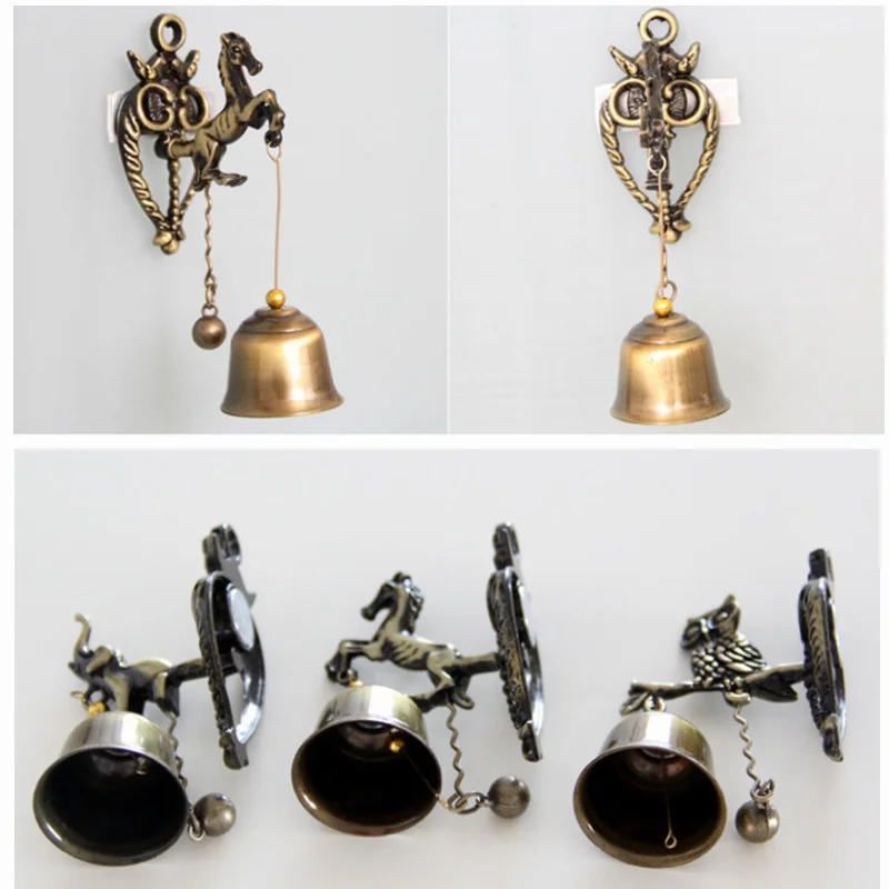 Campana de Metal Vintage, comerciante de puerta, golpeador de buena suerte, carillón de viento, adorno magnético para colgar en la pared para habitación, jardín, tienda, regalo de entrada delanteraCaracterísticas: