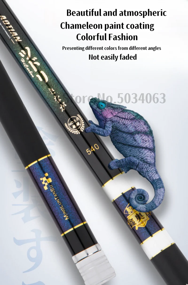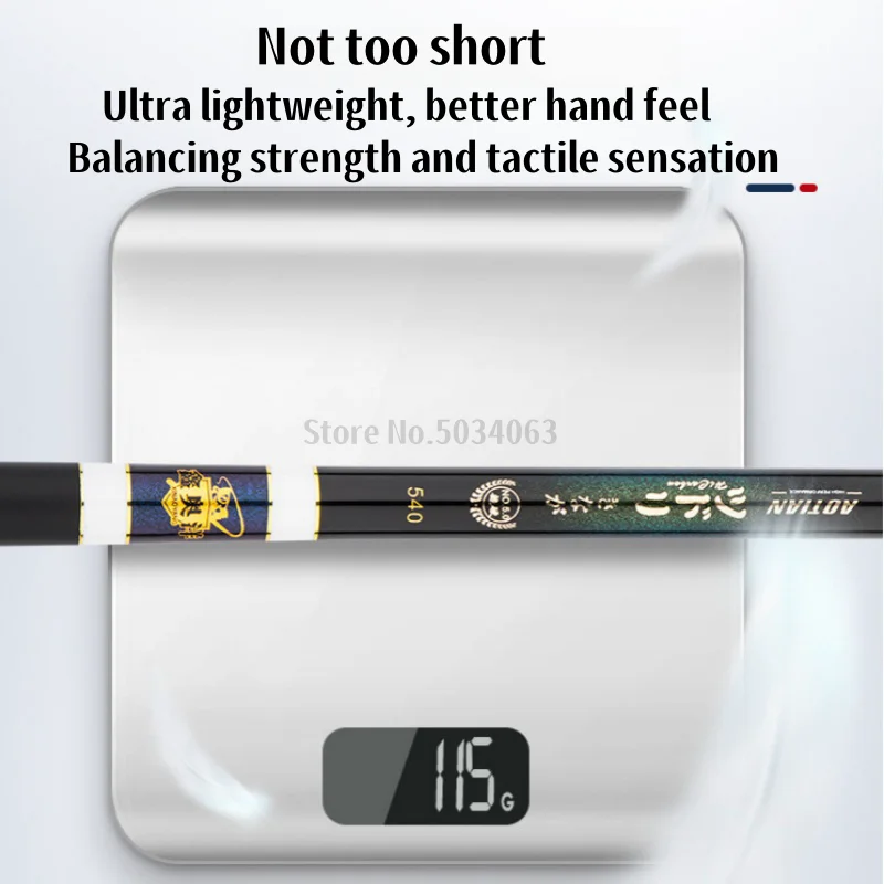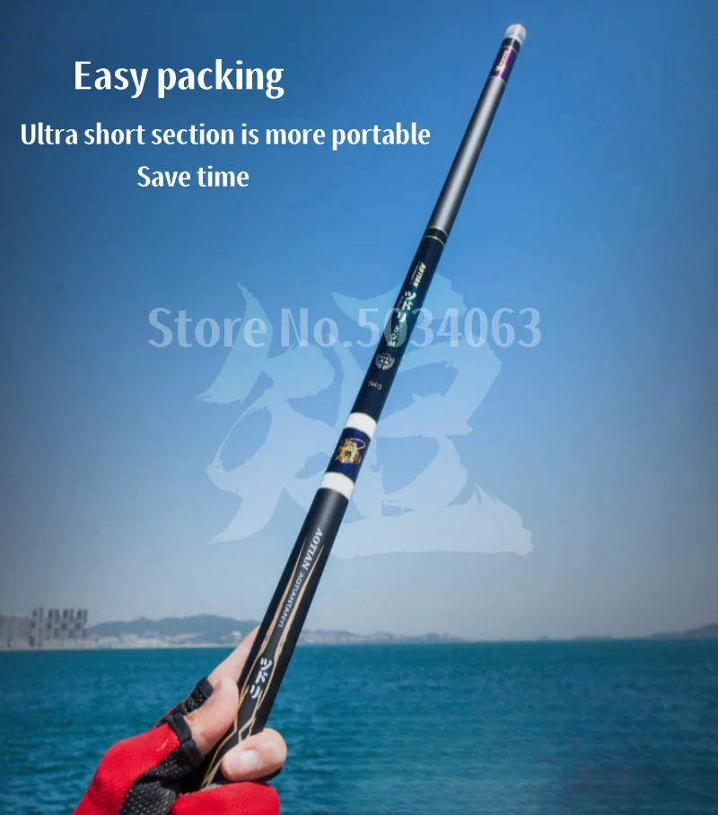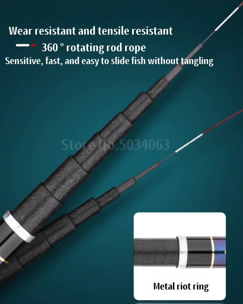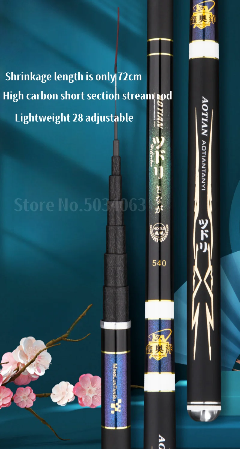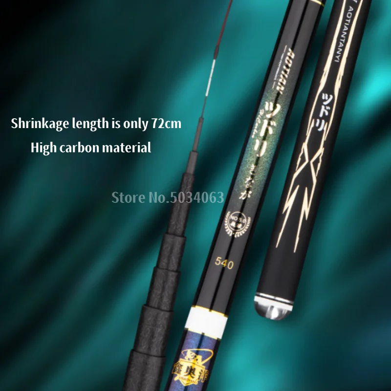 Caña de flujo telescópica 3,6 m-8,1 m, depósito de carbono, estanque, caña de pescar, pez de mano de fibra dura súper ligero