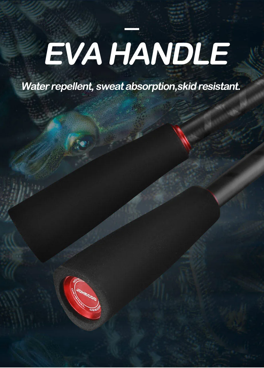 • Caña de pescar Egging de calamar:Esta caña de pescar está diseñada específicamente para la pesca de calamar, lo que la convierte en una herramienta imprescindible para cualquier pescador de calamar.