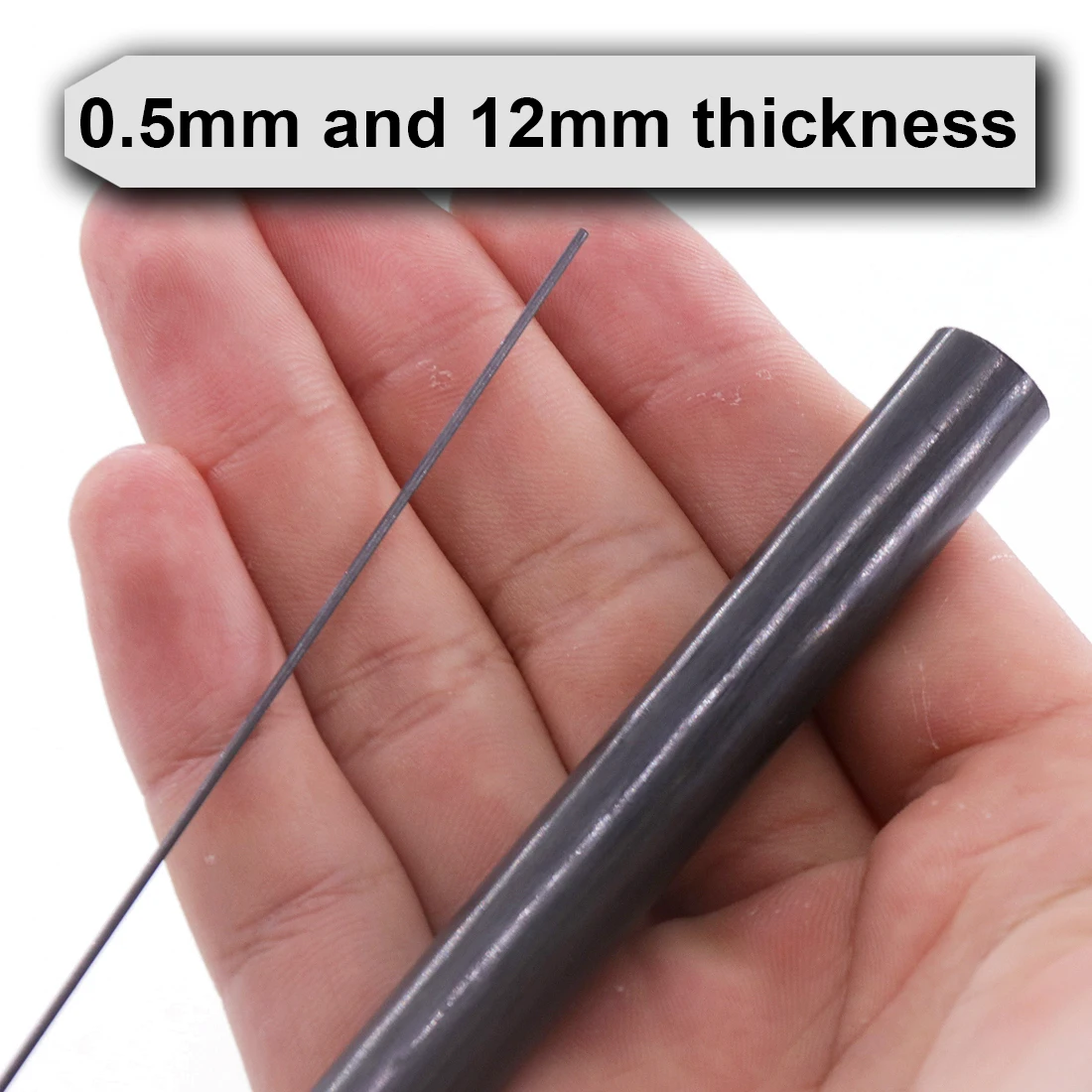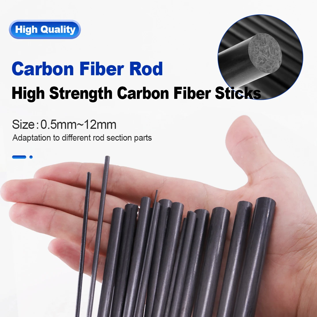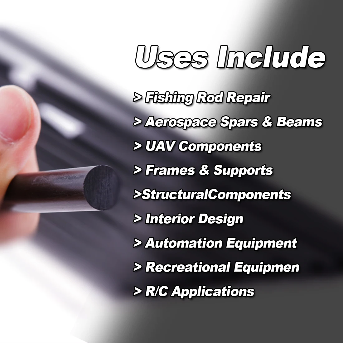 Nuestras varillas sólidas de fibra de carbono tienen una superficie con acabado mate y son fácilmente adheribles.