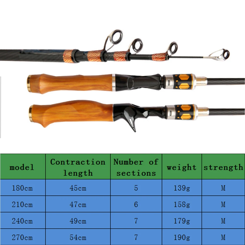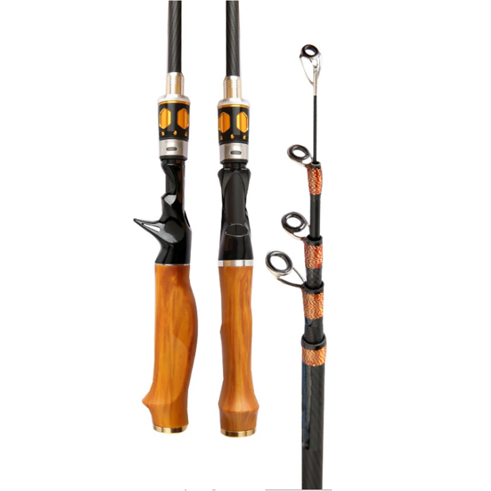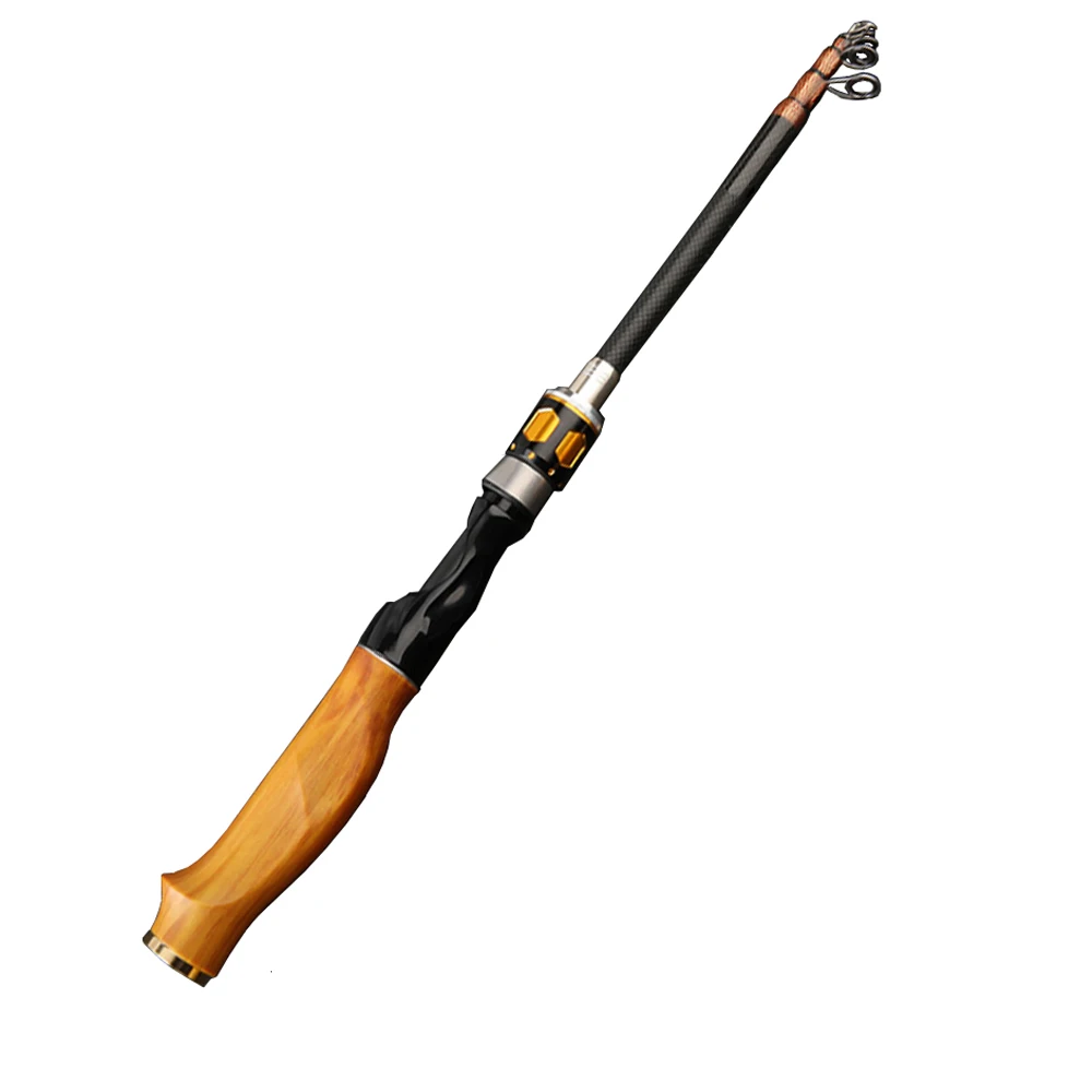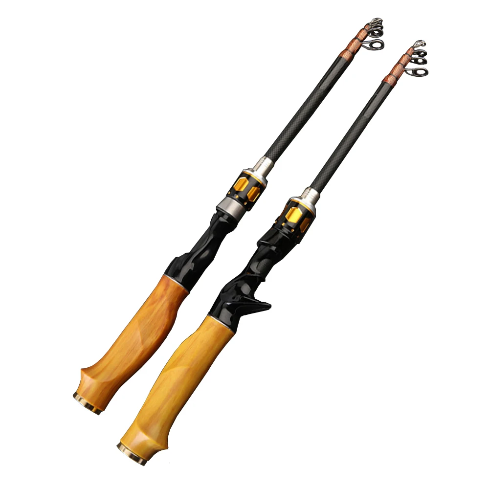 Caña de fundición giratoria de carbono de alta calidad, señuelo de viaje, caña de pescar telescópica de trucha, peso del señuelo 5-20g, poste de mango de madera para carpa
