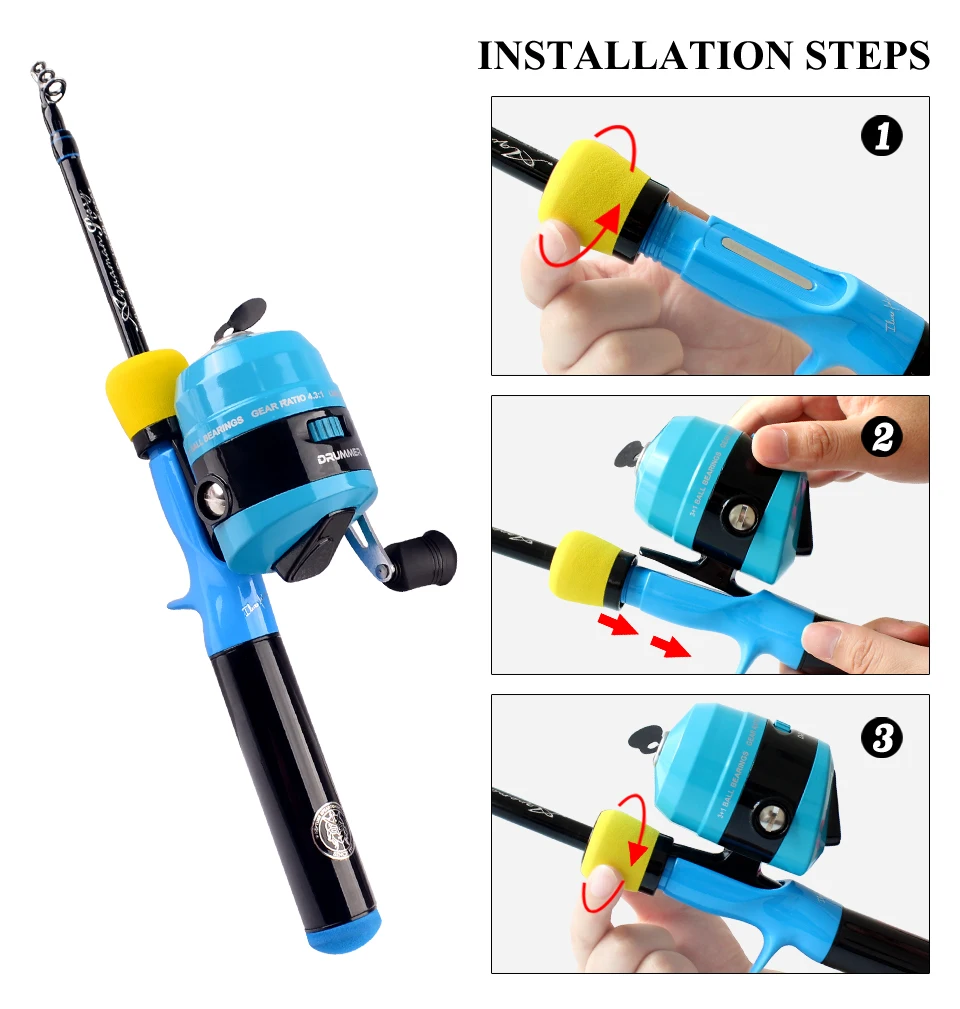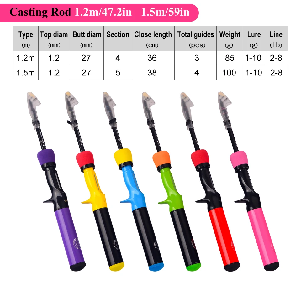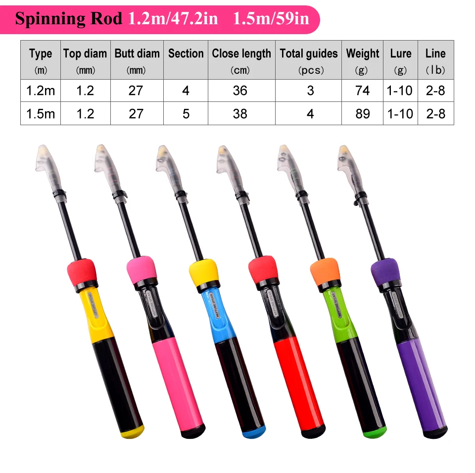 Caña giratoria de 1,2 m y 1,5 m, caña de fundición telescópica ultraligera de fibra de carbono, Mini caña de viaje para niños, carrete de pesca, herramientas de pesca de carpa
