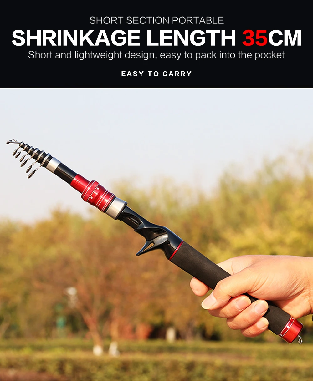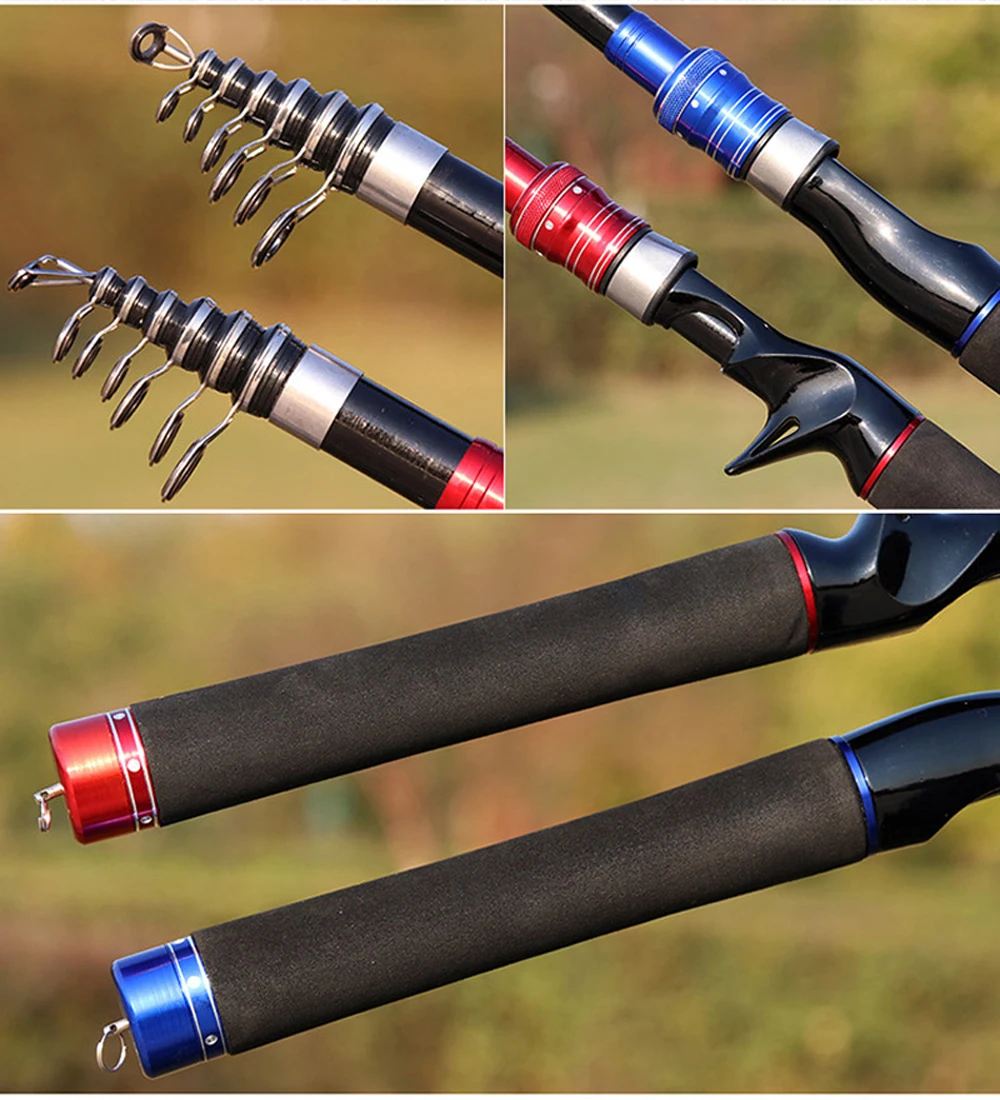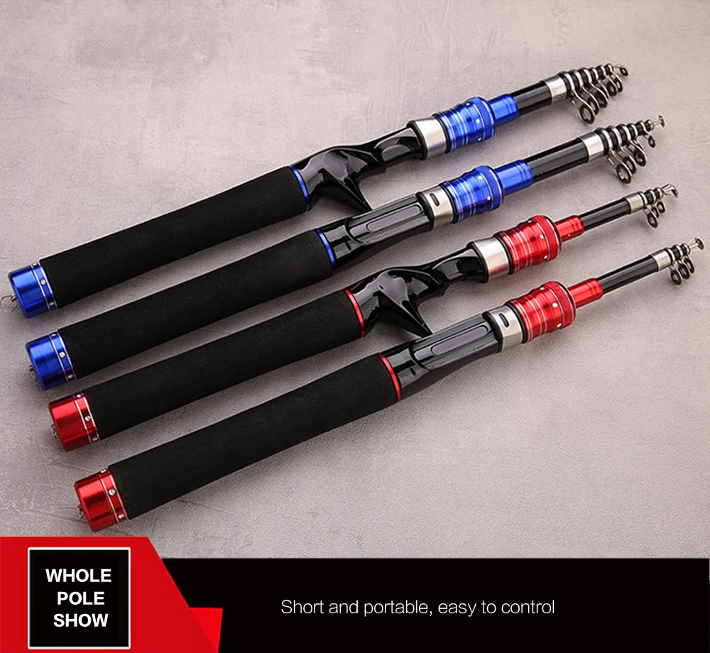 Nueva caña giratoria de fundición 1,5 m 1,8 m 2,1 m 2,4 m caña de pescar telescópica de carbono varilla de viaje ultraligera giratoria