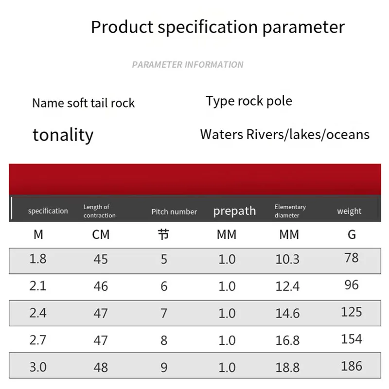 Usos: 1,8-3,0 metros, a menudo utilizado para pesca con Señuelos, Pesca en el mar y otras pesquerías recreativas.