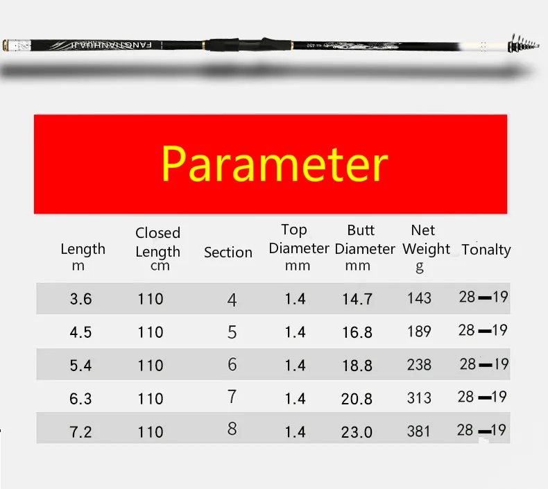 Longitud: 3,6-7,2 m Longitud cerrada: 110cm