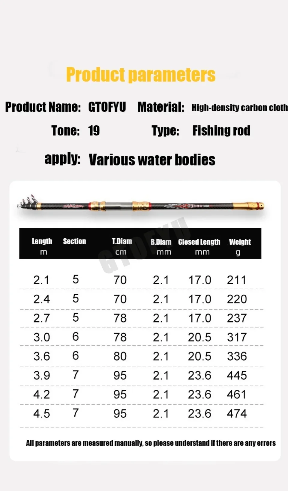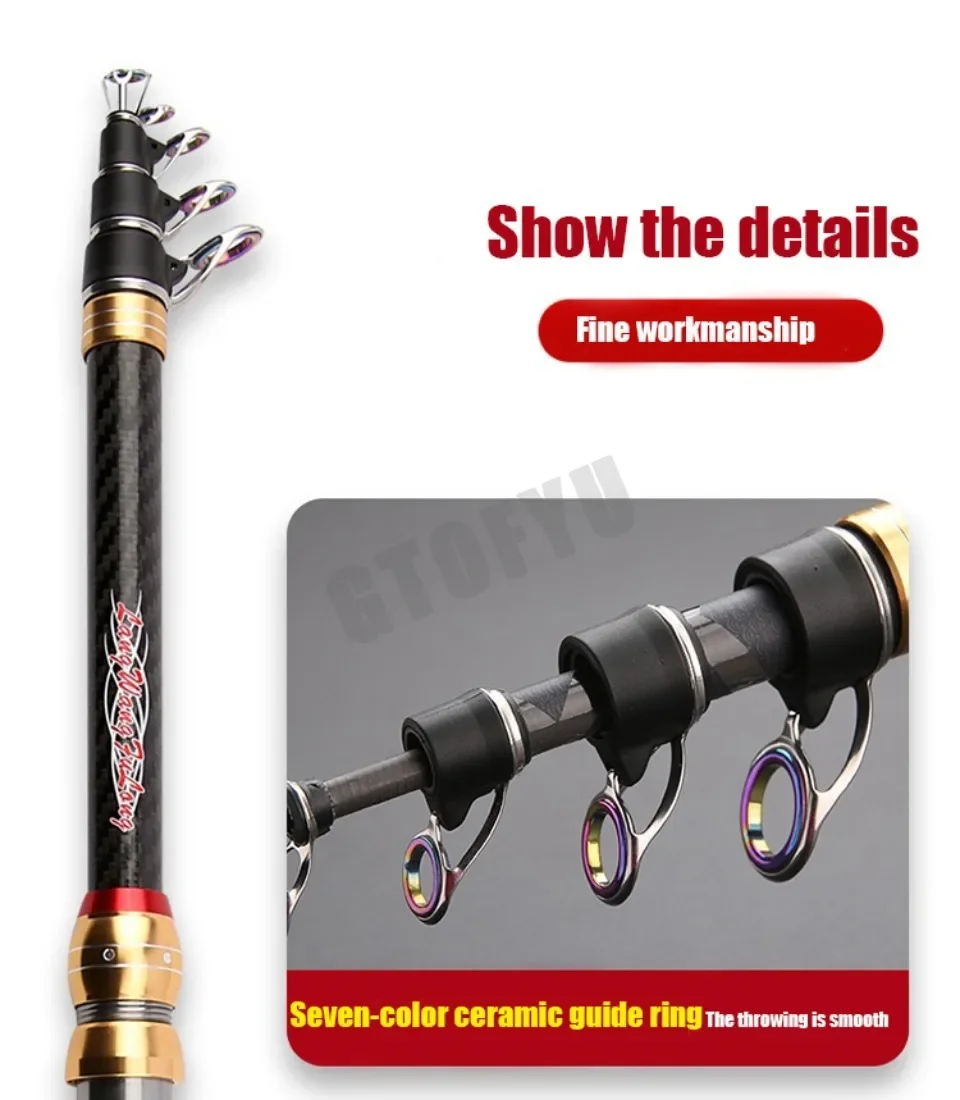 Caña giratoria de Surf telescópica 2,1/2,4/2,7/3,6/3,9/4,2/4,5 m Power80-200g 36T, caña de pescar de carbono para viajes, Surfcasting, Shore Casting