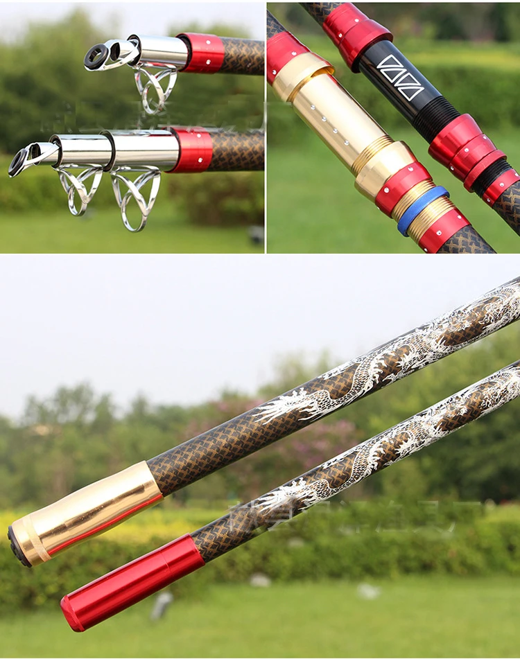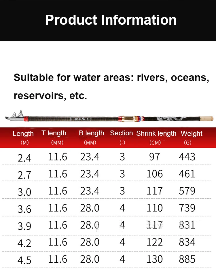 1. Esta caña de pescar está hecha de fibra de carbono, fuerte y duradera, adecuada para tiros largos y peces grandes