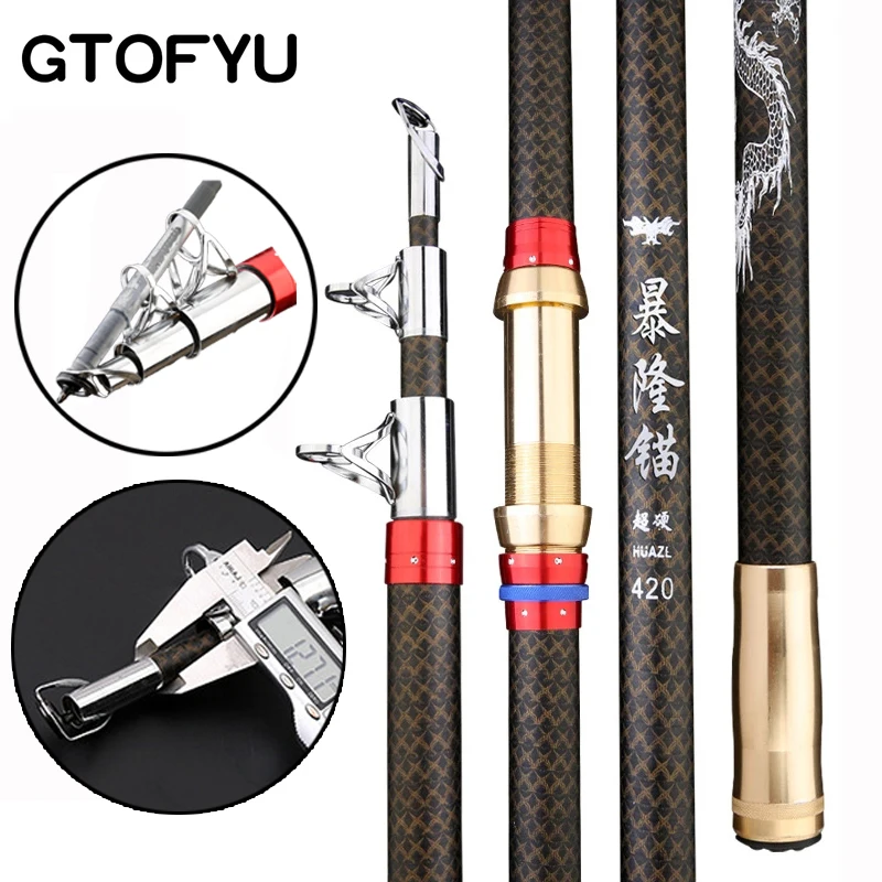1. Esta caña de pescar está hecha de fibra de carbono, fuerte y duradera, adecuada para tiros largos y peces grandes