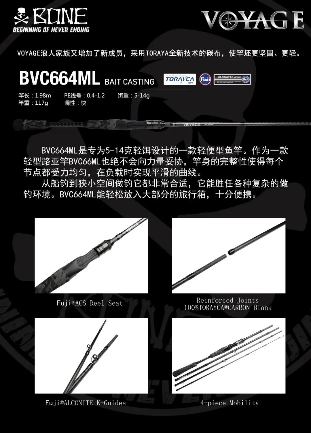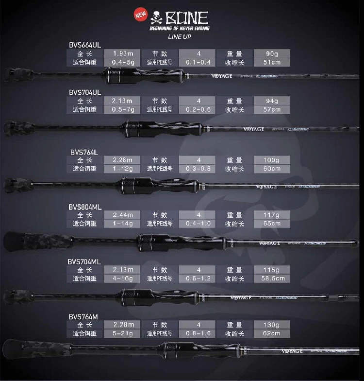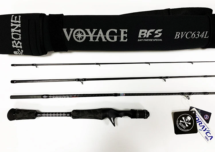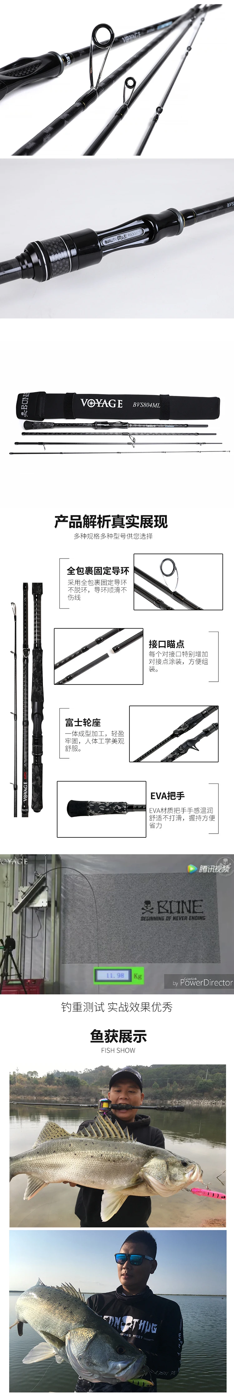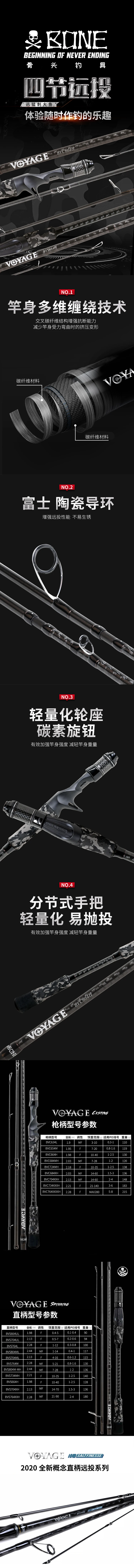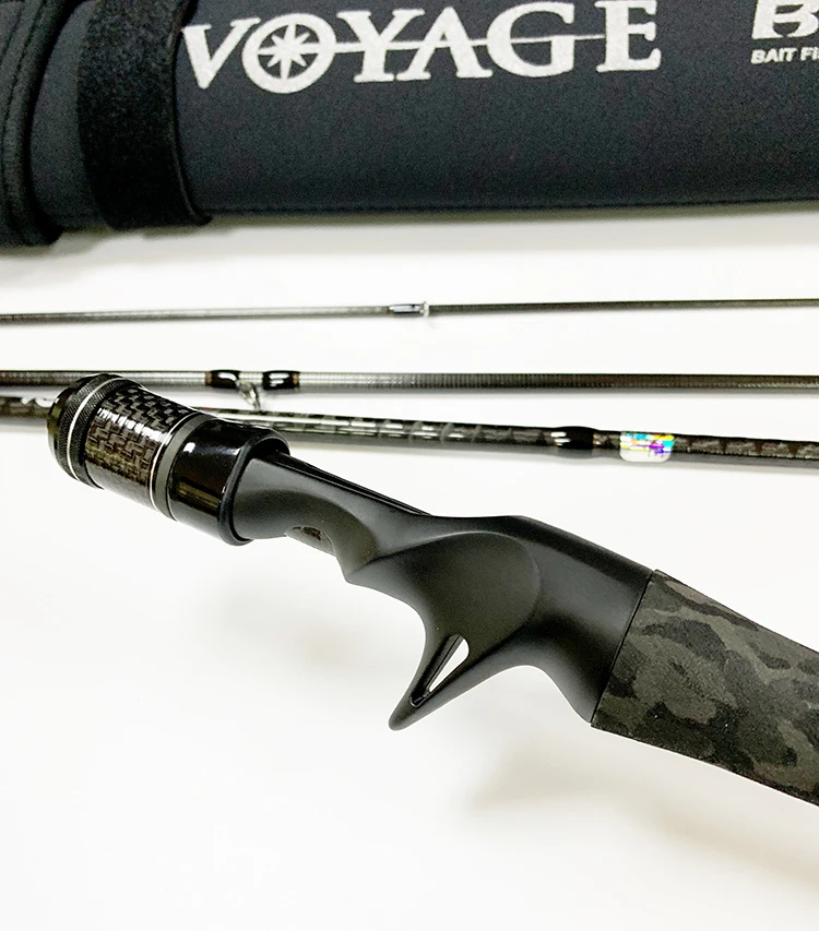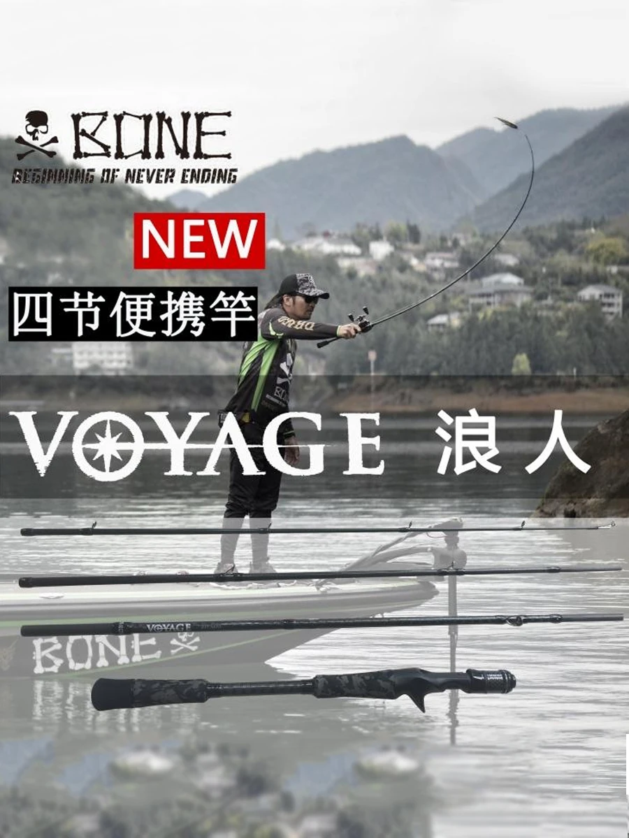 Caña de hueso Ronin VOYAGE de cuatro secciones, percha de pez negra, mango recto para lanzar de largo alcance
