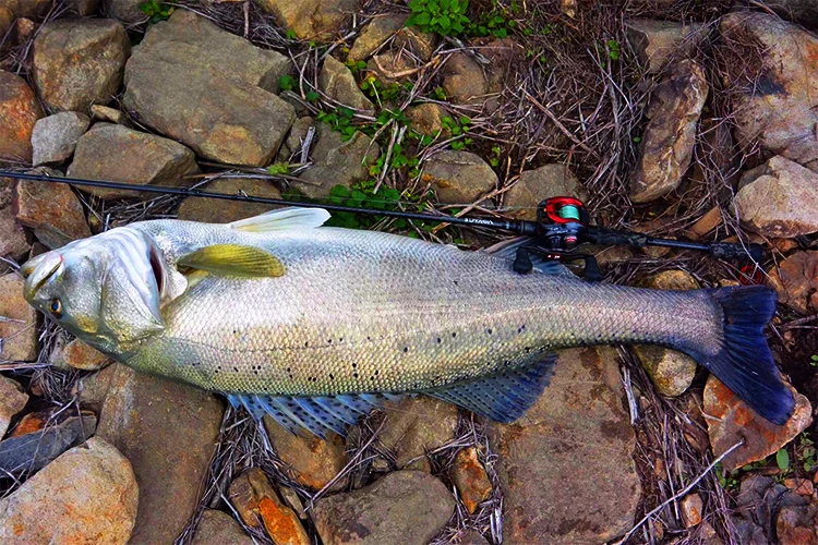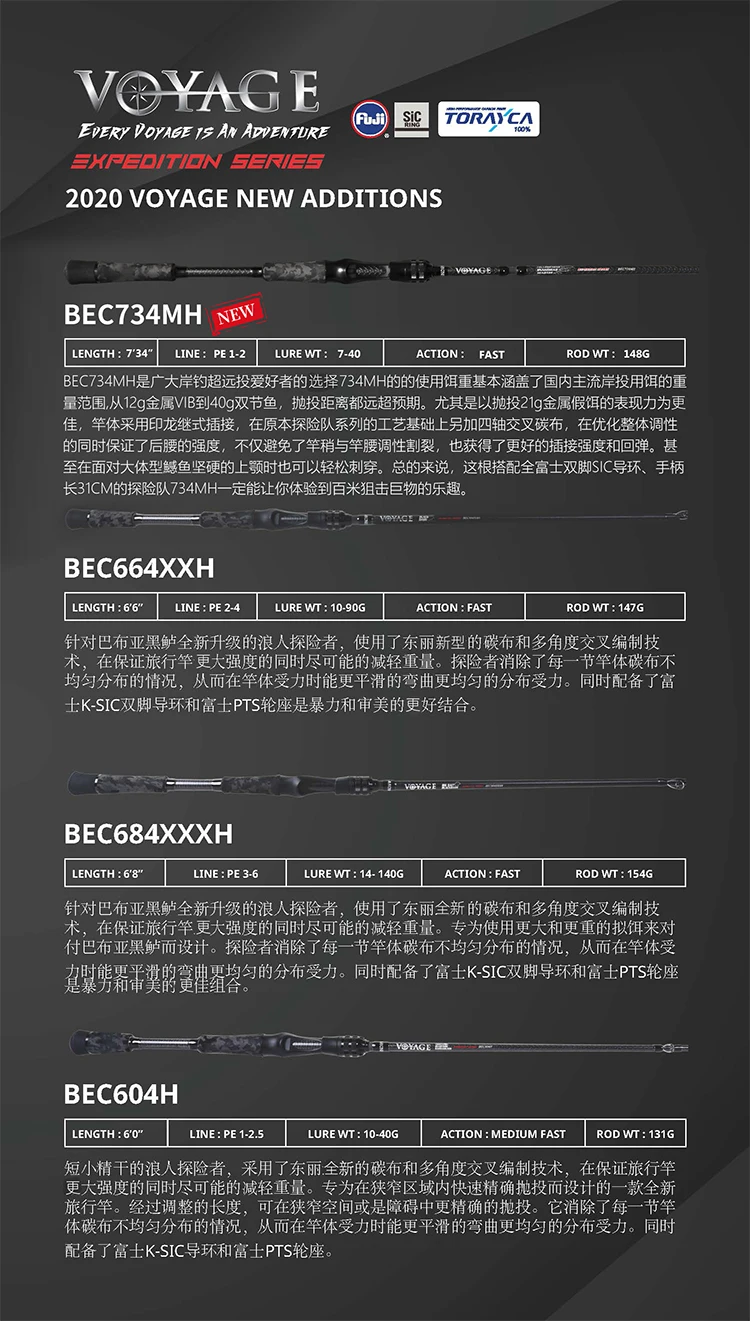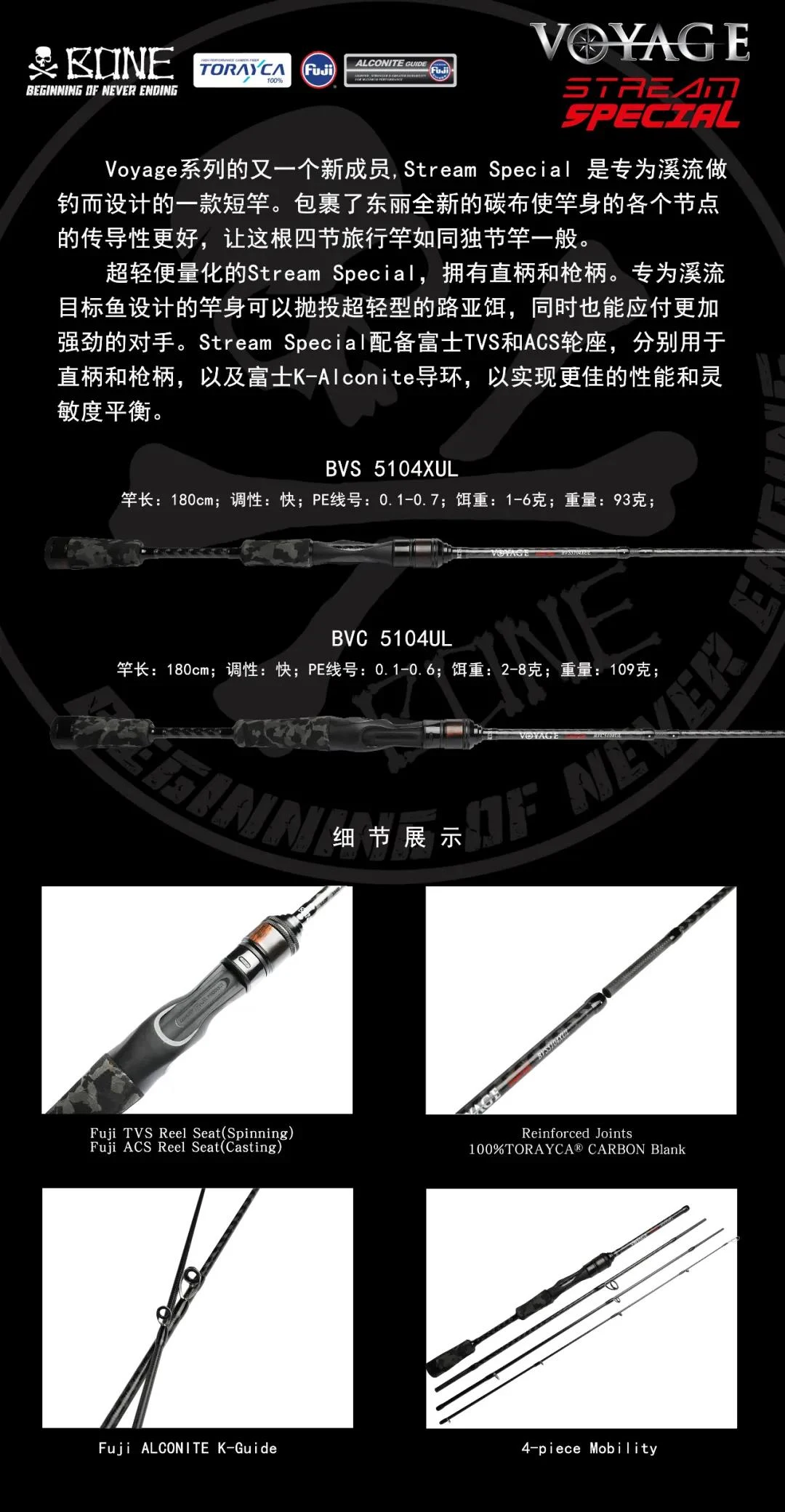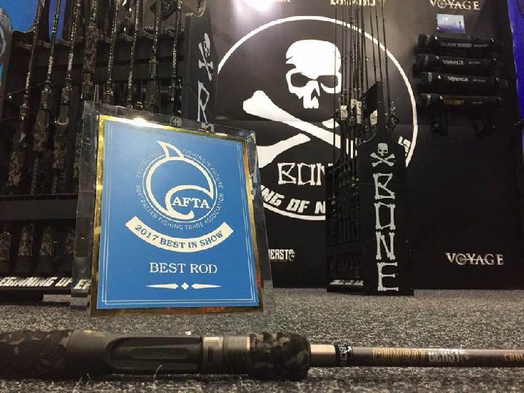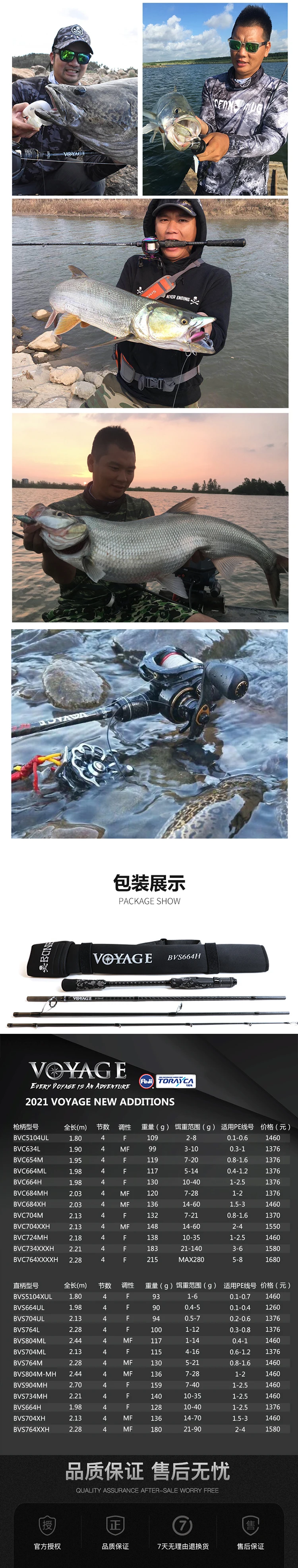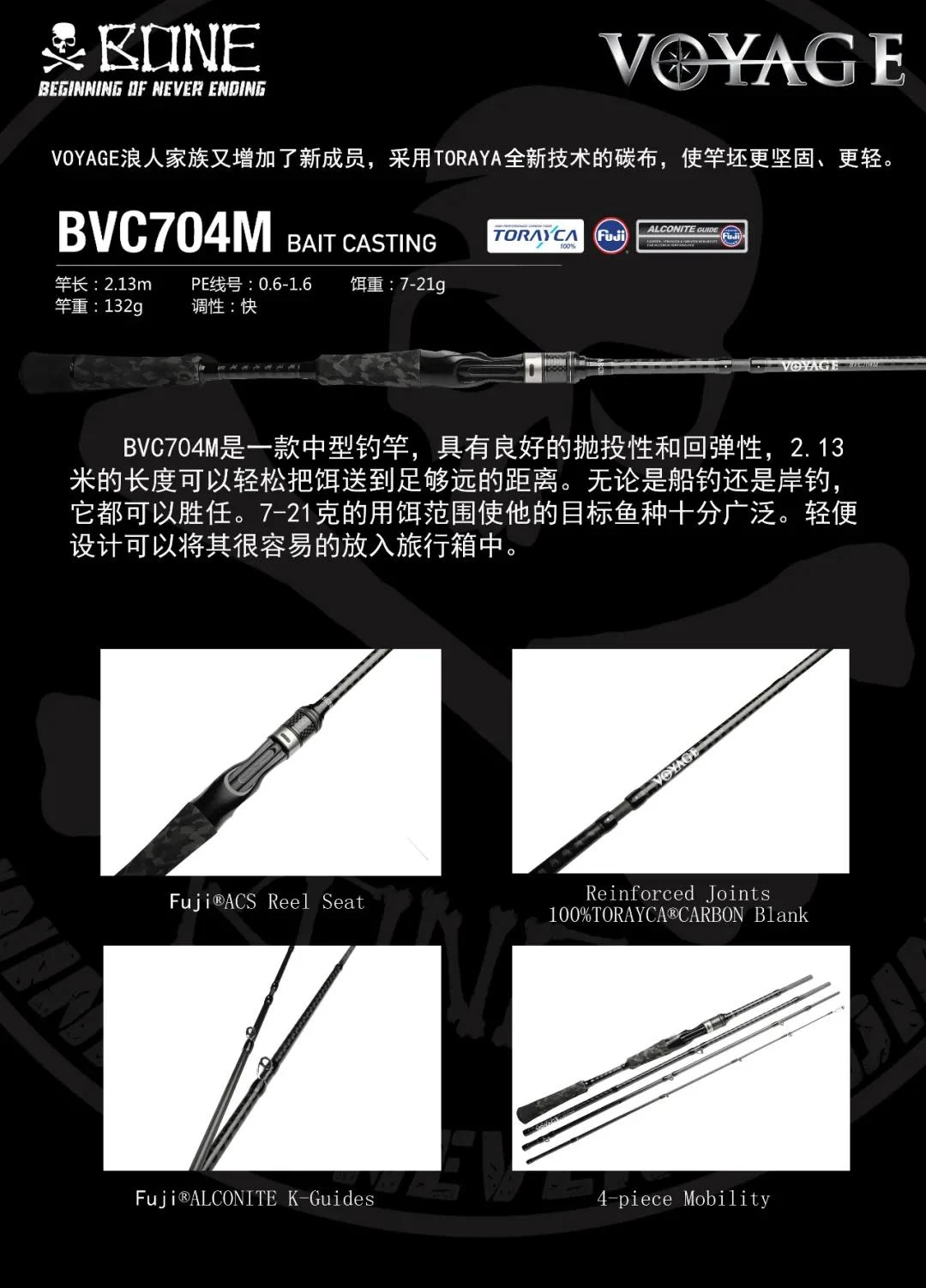 Caña de hueso Ronin VOYAGE de cuatro secciones, percha de pez negra, mango recto para lanzar de largo alcance