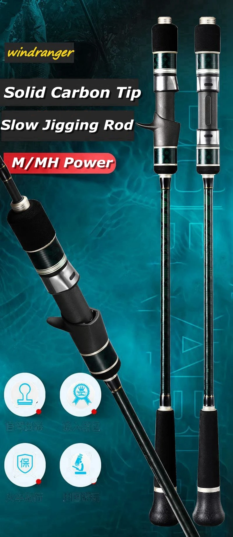Varilla de Jigging lenta de Punta sólida de carbono