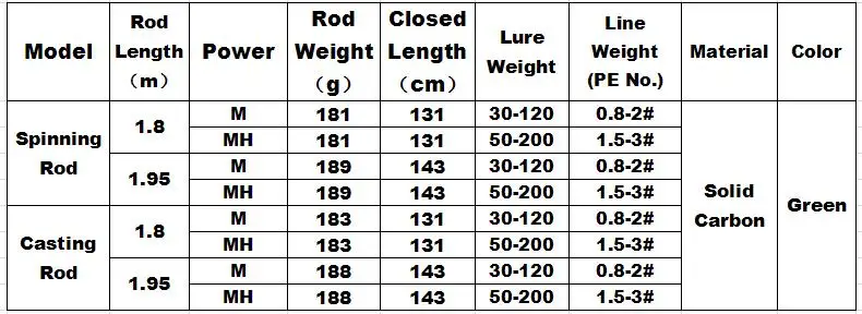 Peso del señuelo: 30-120g / M ; 50-200g / MH.