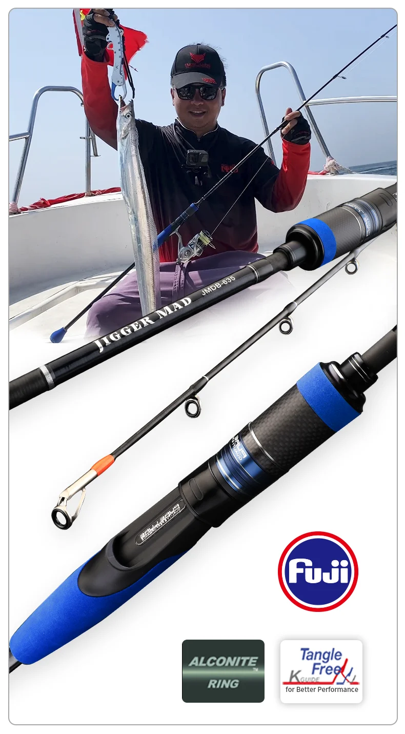 JMDB635-1902-20 (Tipo: Fundición, Longitud: 1,90 m, Plantilla rápida: 80-150 g, Plantilla lenta: 200-400 g, Peso de la línea: 3-5 PE, Peso de la varilla: 19,7 g, Piezas: Varilla de 2 piezas ajustada a tope )