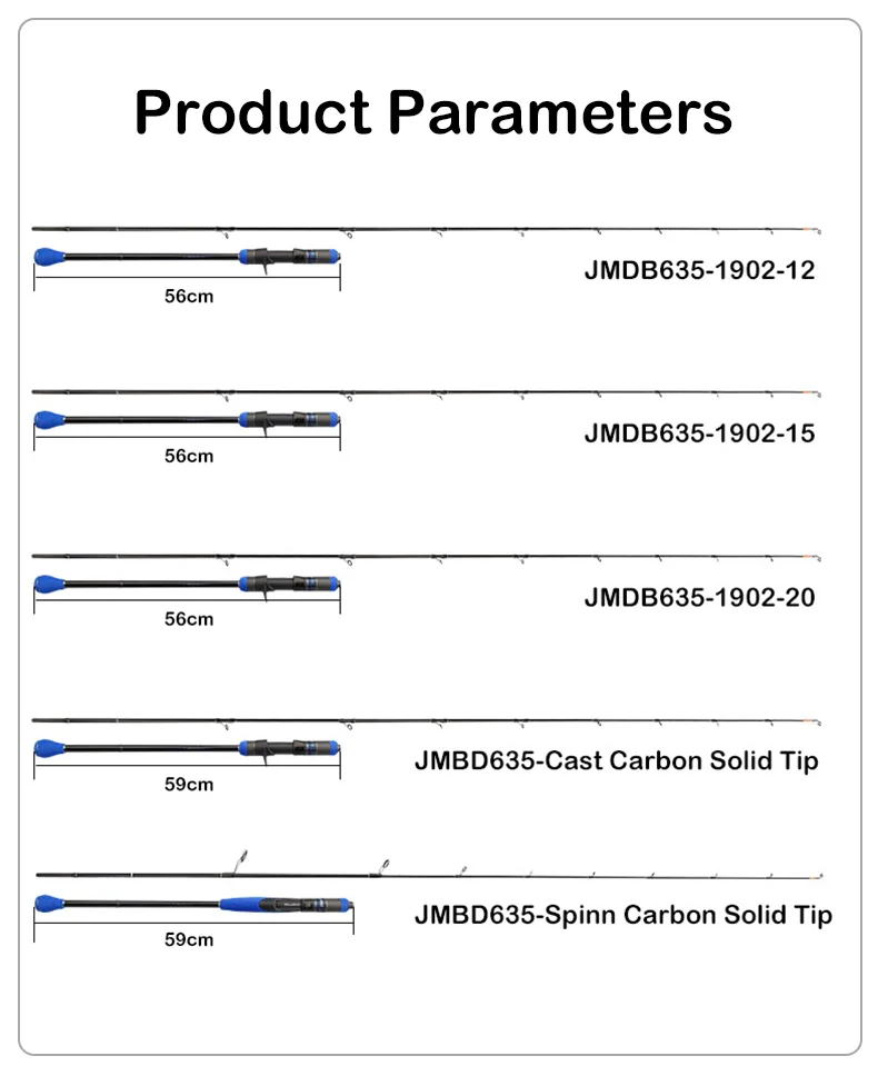 JMDB635-1902-12 (Tipo: Fundición, Longitud: 1,90 m, Plantilla rápida: 40-100 g, Plantilla lenta: 80-220 g, Peso de la línea: 1-3 PE, Peso de la varilla: 172,2 g, Piezas: Varilla de 2 piezas ajustada a tope )