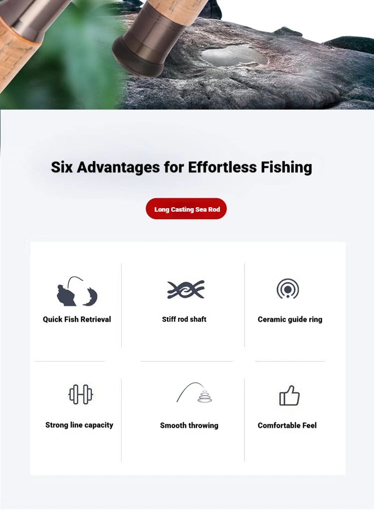 Esta caña de pescar de mar de fibra de carbono cuenta con un espacio en blanco liviano pero ultrarrápido para lanzamientos potentes a larga distancia, ideal para la pesca en surf, roca o barco. Diseñado con un mango duradero de imitación de madera para mayor comodidad y estilo clásico, incluye guías de alta calidad y un carrete a juego para un rendimiento suave. Perfecto para apuntar a especies más grandes como lubina, caballa o pargo en entornos de agua salada.