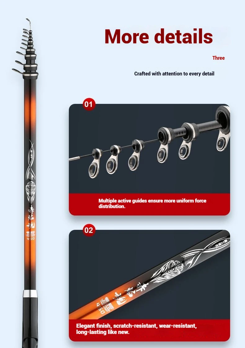 Este es un versátil 3 # Varilla de jigging Shore de fibra de carbono: liviana, rígida y diseñada para lanzamientos a larga distancia. Ideal tanto para la pesca en agua dulce como en agua salada, admite aparejos flotantes deslizantes y funciona a la perfección como caña de mano o caña giratoria (combo mano-mar). Perfecto para apuntar peces medianos a grandes en ríos, lagos o zonas costeras.