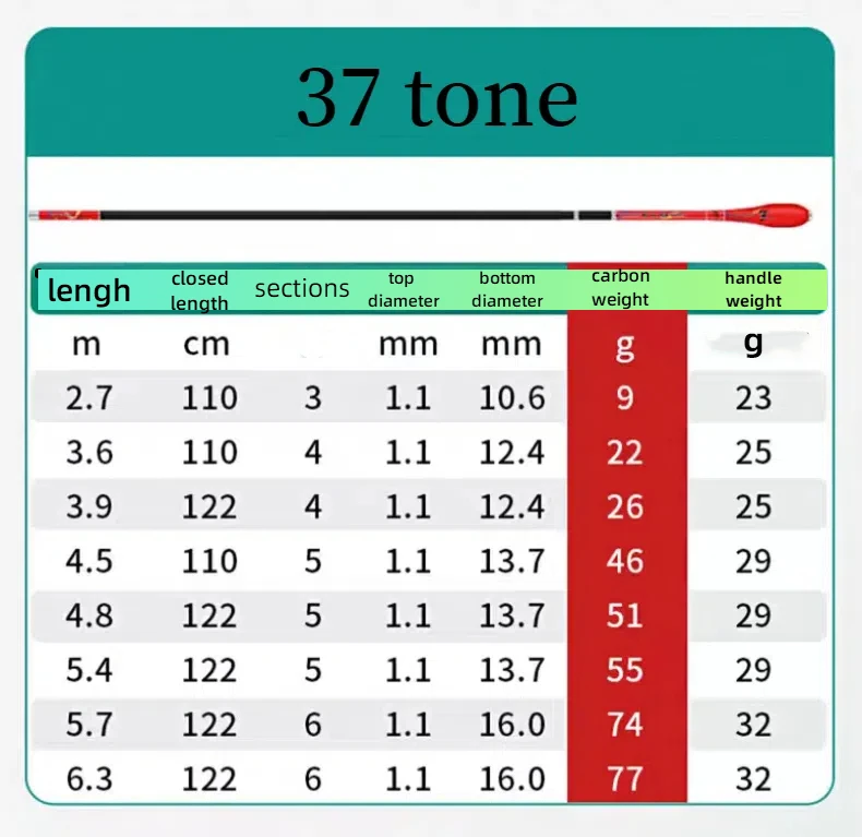 Longitud: 3,6-6,3 m Longitud cerrada: 106-118cm
