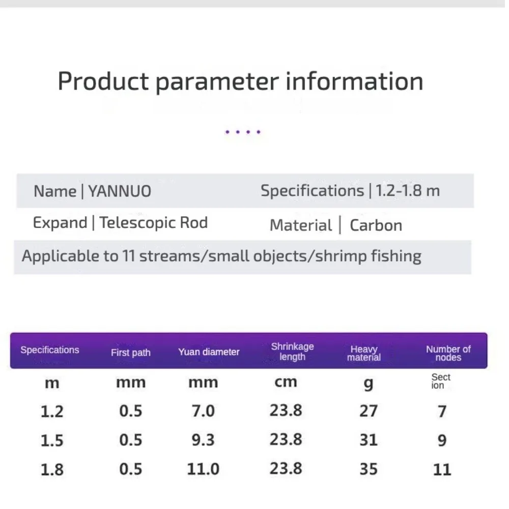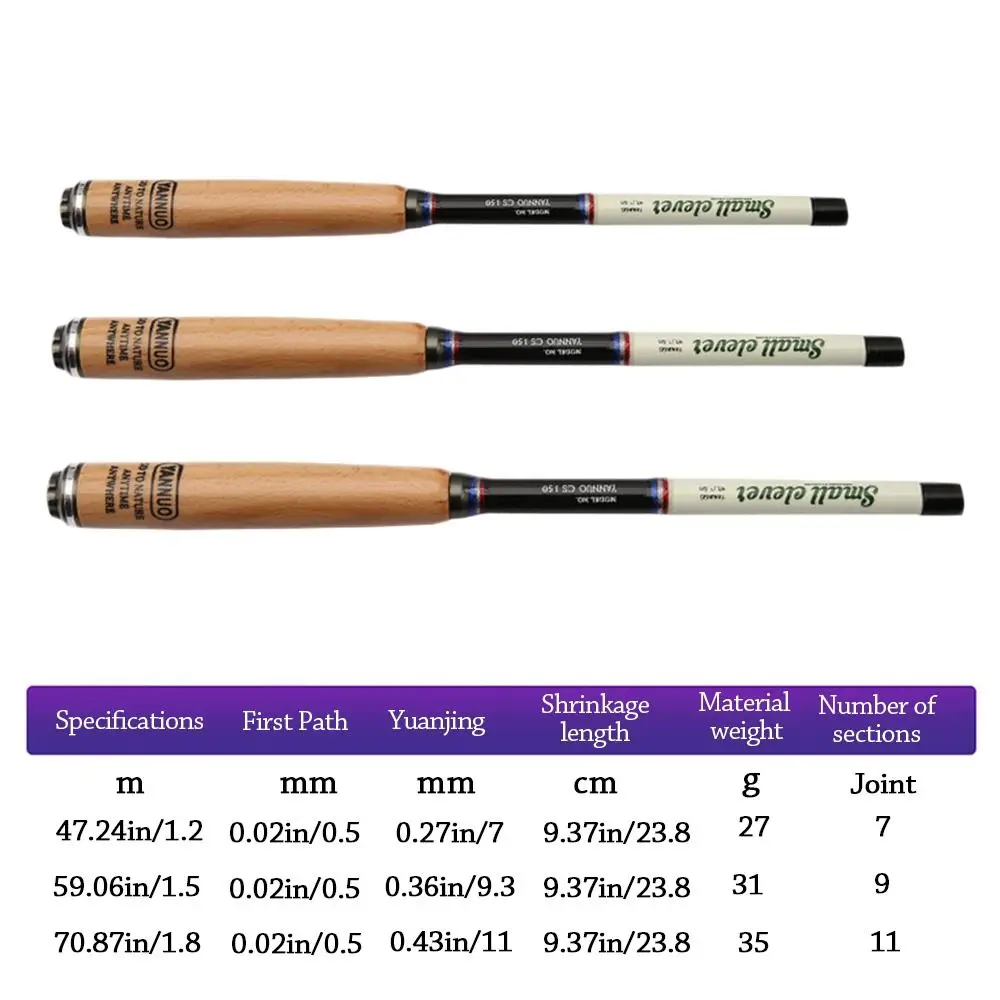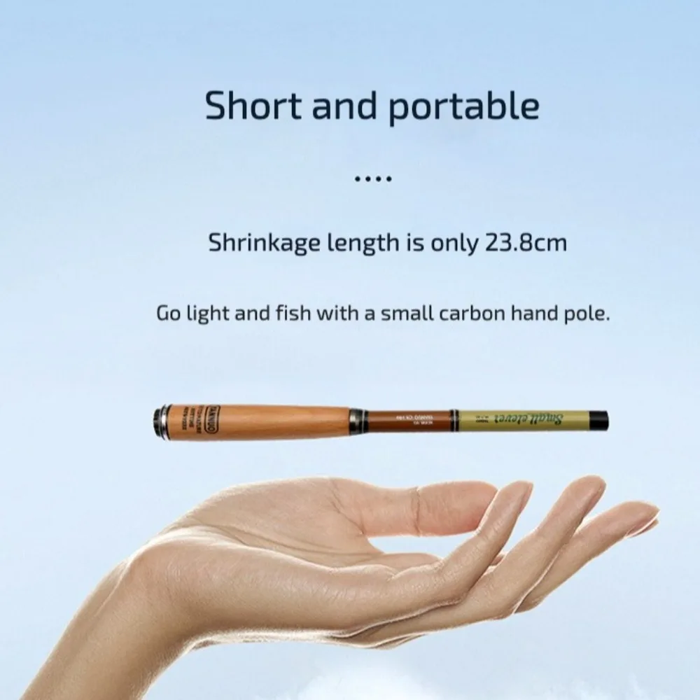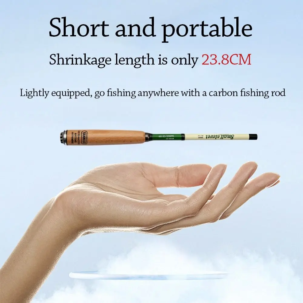 Brand New and High Quality! Name: Fishing Rod Material: Carbon Rod tone: hard fishing Rod Length: 1.2/1.5/1.8/2.1m Shrinkage Length: 23.8cm(9.37in) Gadget fishing rod, micro-object fishing rod. Applicable: Stream/gadget/shrimp fishing. Wooden handle, non-slip and sweat-proof, feel comfortable. 1.2m: First diameter 0.5mm, Yuan diameter 7.0mm, length 23.8cm after contraction, weight 27G, 7 sections. 1.5m: First diameter 0.5mm, Yuan diameter 9.3mm, length 23.8cm after contraction, weight 31G, 9 knots. 1.8m: First diameter 0.5mm, Yuan diameter 11.0mm, length 23.8cm after contraction, weight 35g,11 knots Package included: 1 PC fishing rod Notice: Please allow 1-2cm error due to manual measurement and make sure you do not mind before ordering. Please understand that colors may exist chromatic aberration as the different placement of pictures.