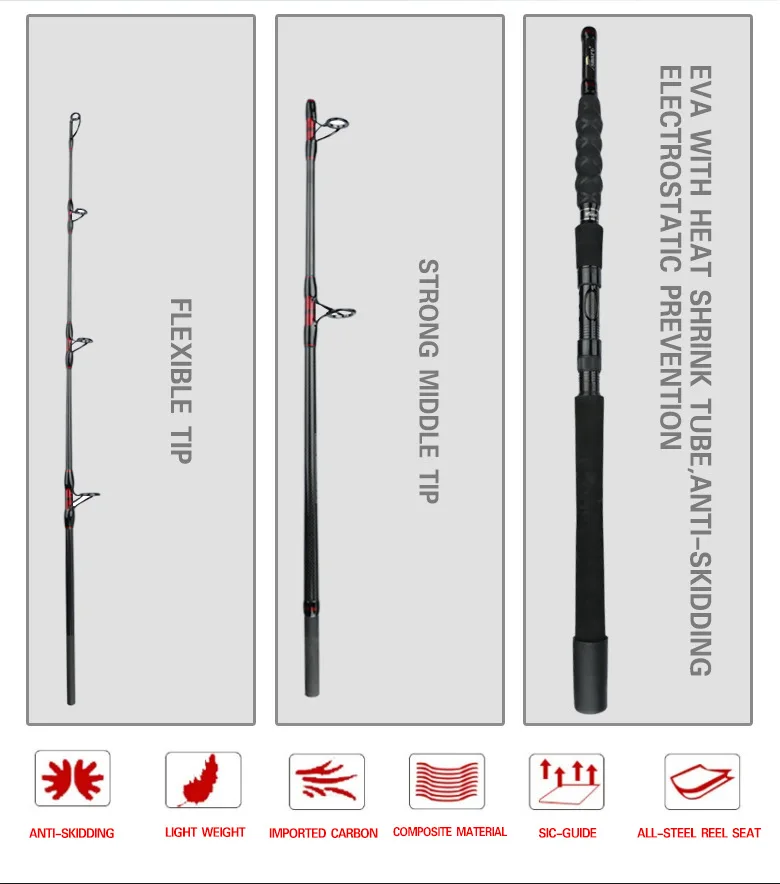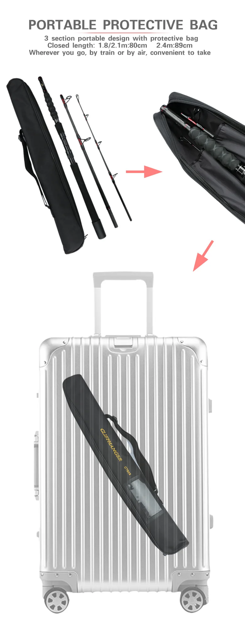 Caña de pescar de 1,8 m, 2,1 m, 2,4 m, 30-50Lb, 3 secciones, caña giratoria para Baitcasting, prueba de 20kg, caña de viaje de fundición de señuelo de peso pesado