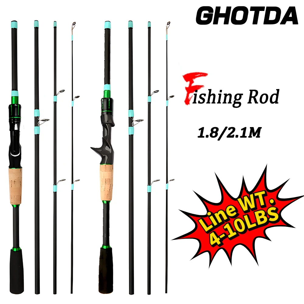 Caña de pescar de 4/5 secciones, 1,8 m, 2,1 m, señuelo de fibra de carbono, fundición giratoria, caña de pescar ligera y rápida, peso de cebo 3,5-14g, aparejos de pesca