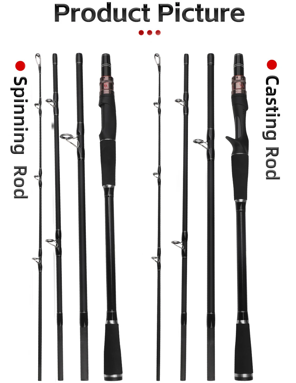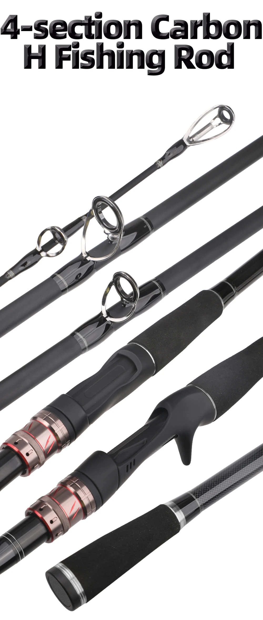 Caña de pescar de 4 secciones H, caña de viaje de carbono, portátil, fundición/Spinning, peso del señuelo 15-35g