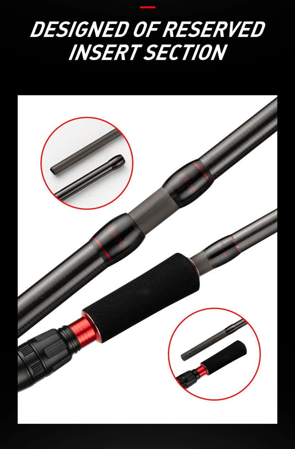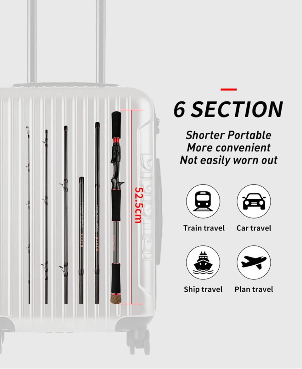 Caña de pescar de 6 secciones, caña de pescar de viaje portátil giratoria, fibra de carbono de 30T para caña de juego grande, peso ultraligero