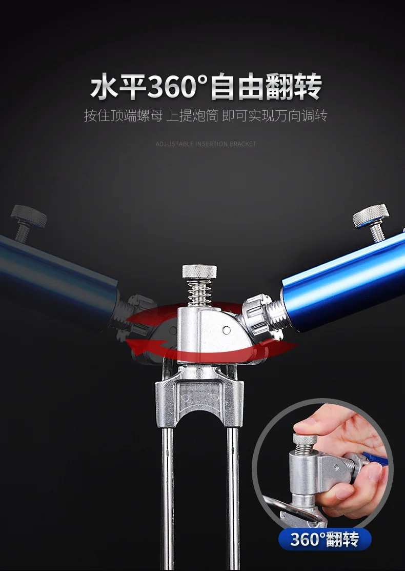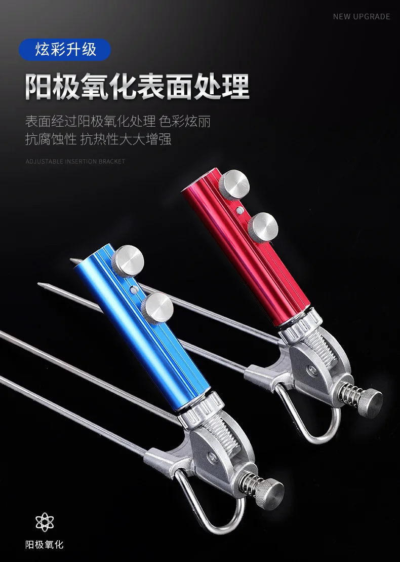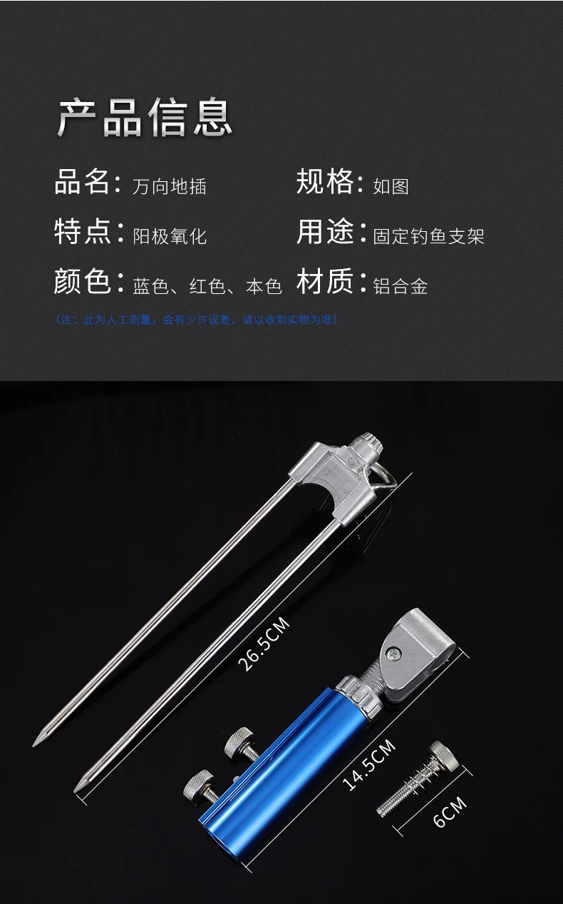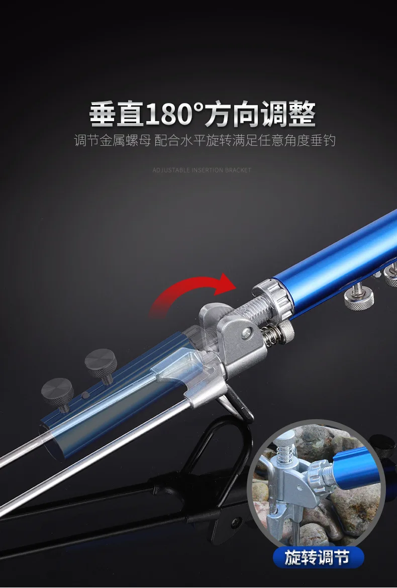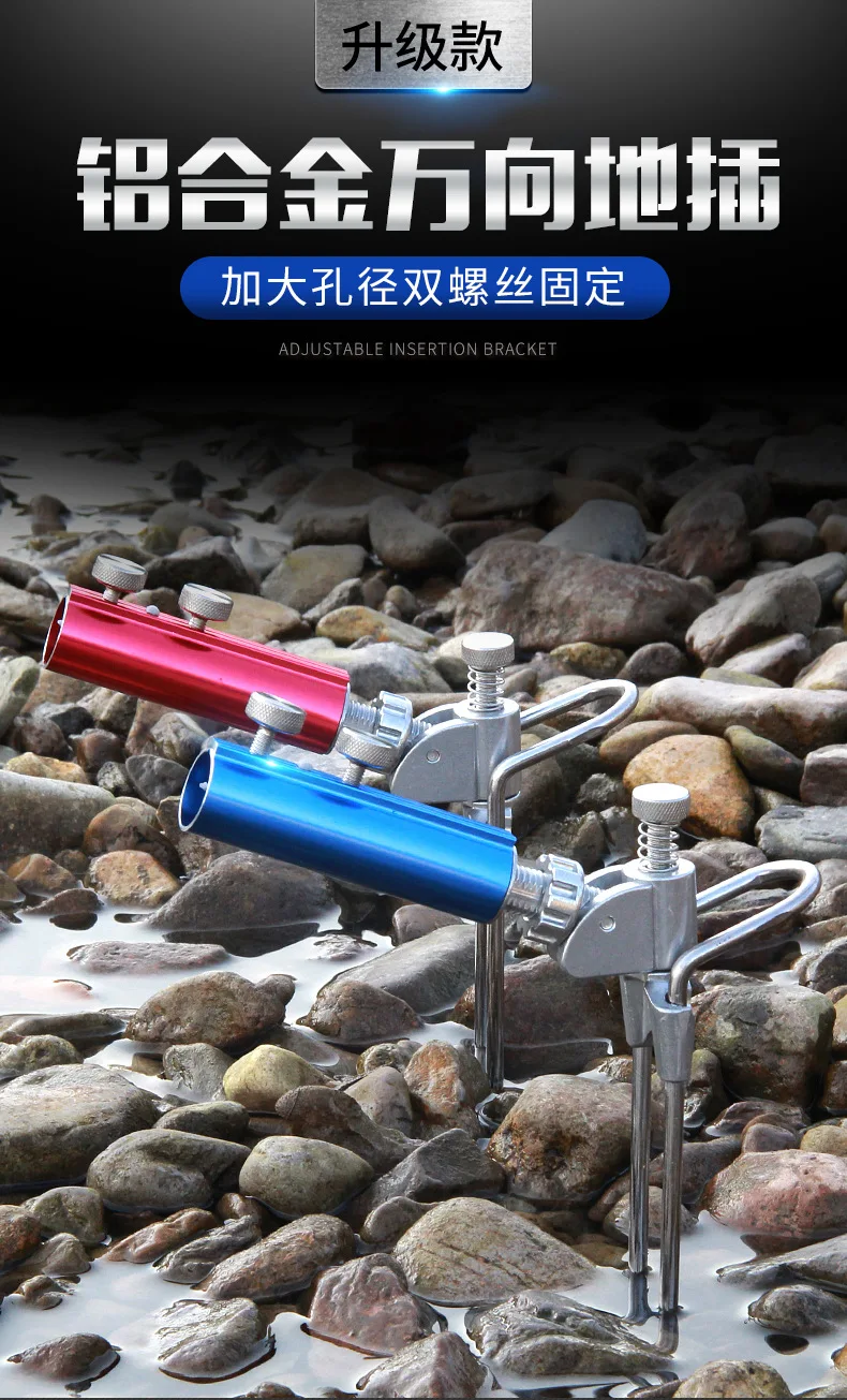 Caña de pescar de acero inoxidable GF23, soporte para tenedores de tierra, cinta de color, presione el enchufe a las direcciones Adjsut.