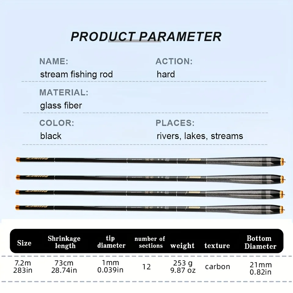 Caña de pescar de agua dulce, fibra de carbono súper dura, carpa con mosca, caña de pescar de agua dulce, telescópica ultraligera de 7,2 M, 1 ud.