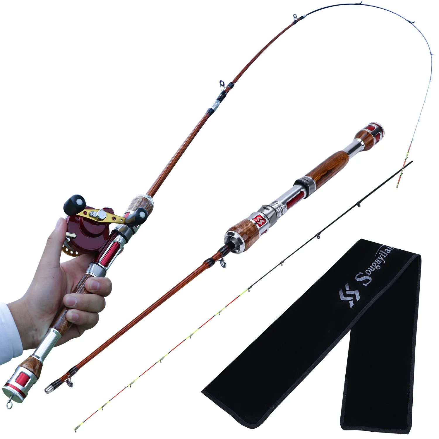 Sougayilang caña de pescar de balsa de 1,2 m aleación de titanio 2 secciones longitud ajustable caña de pescar telescópica caña de pescar portátil para barco
