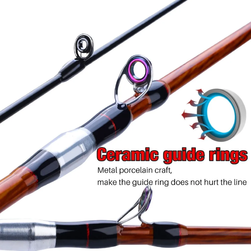 1. Esta caña de pescar está hecha de fibra de carbono, resistente y duradera.