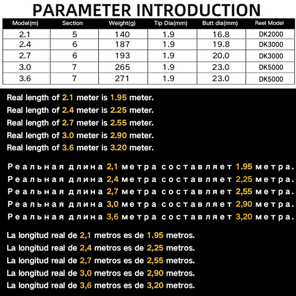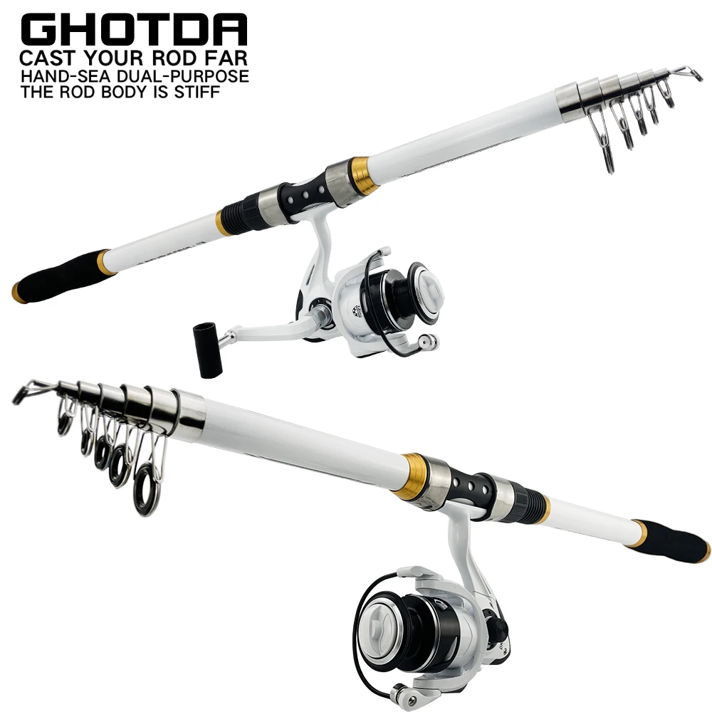 Caña de pescar blanca de 3,6/3,0/2,7/2,4/2,1 M, carrete de pesca de Metal de banda ligera/dura FRP, balancín plegable para mano izquierda y derecha, depósito de alimentador