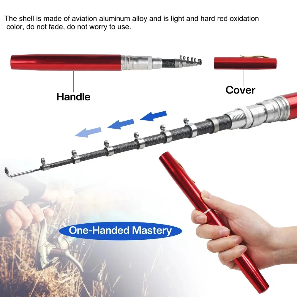 COMPACTA Y PORTÁTIL: la caña de pescar es pequeña, solo tiene un tamaño de bolsillo, fácil de llevar, el cuerpo compacto y ligero cabe fácilmente en su bolso, mochila, bolsillo de ropa, etc.