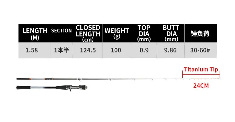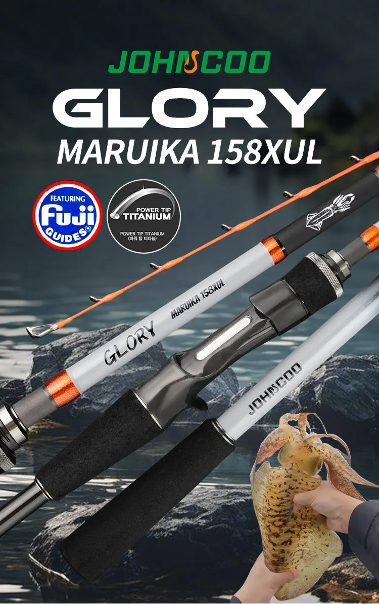 Caña de pescar de calamar Johncoo, potente acción 9:1, caña de pescar XUL de 1,58 m para sepia, caña de pescar de titanio