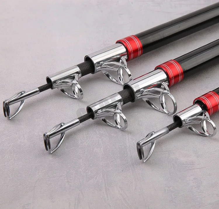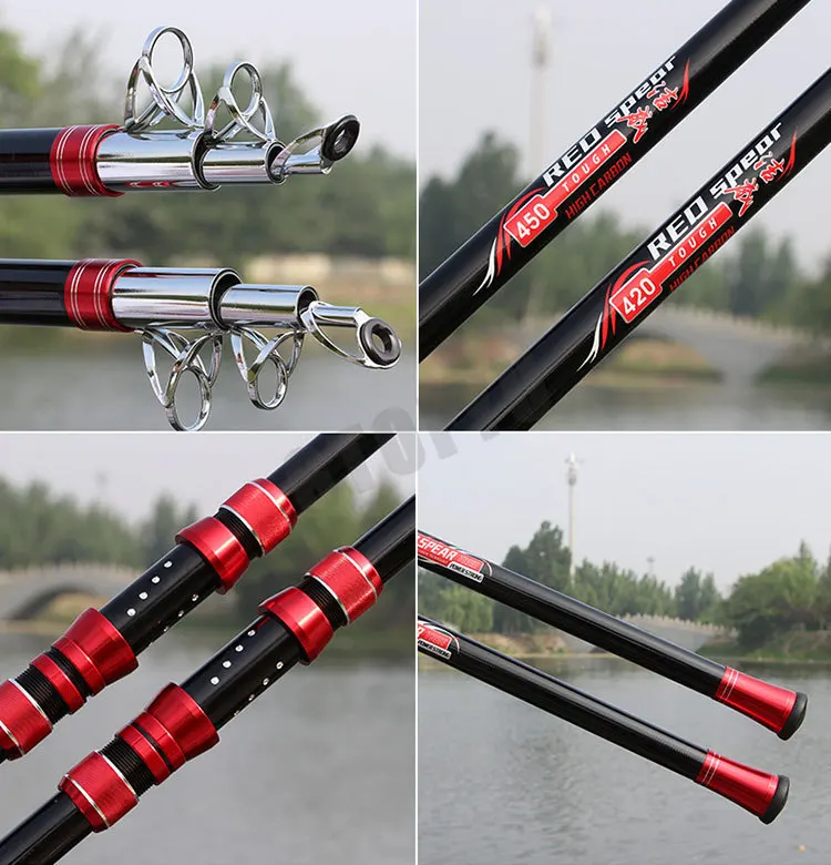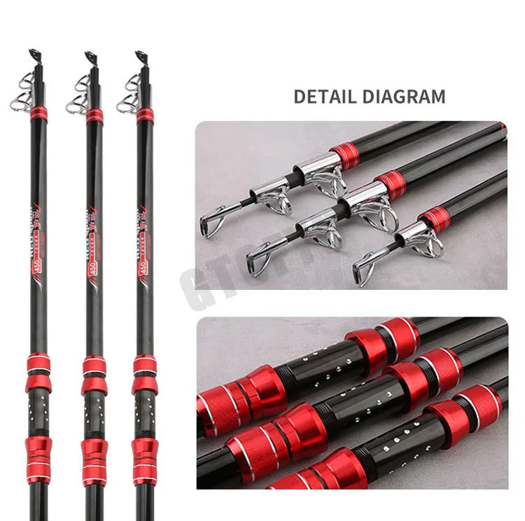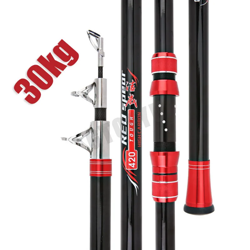 1. Esta caña de pescar está hecha de fibra de carbono, fuerte y duradera, adecuada para tiros largos y peces grandes