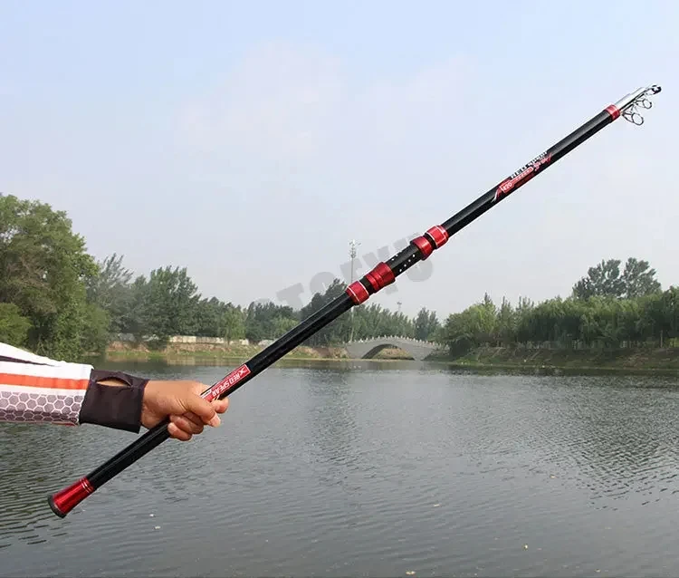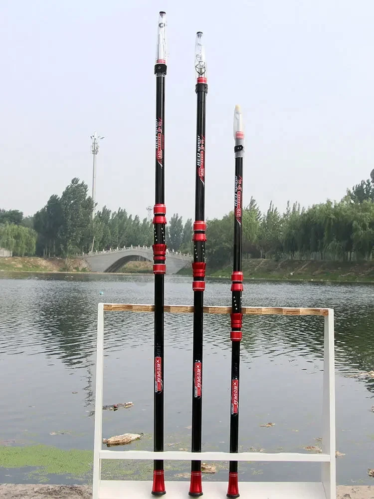 1. Esta caña de pescar está hecha de fibra de carbono, resistente y duradera, adecuada para tiros largos y peces grandes.