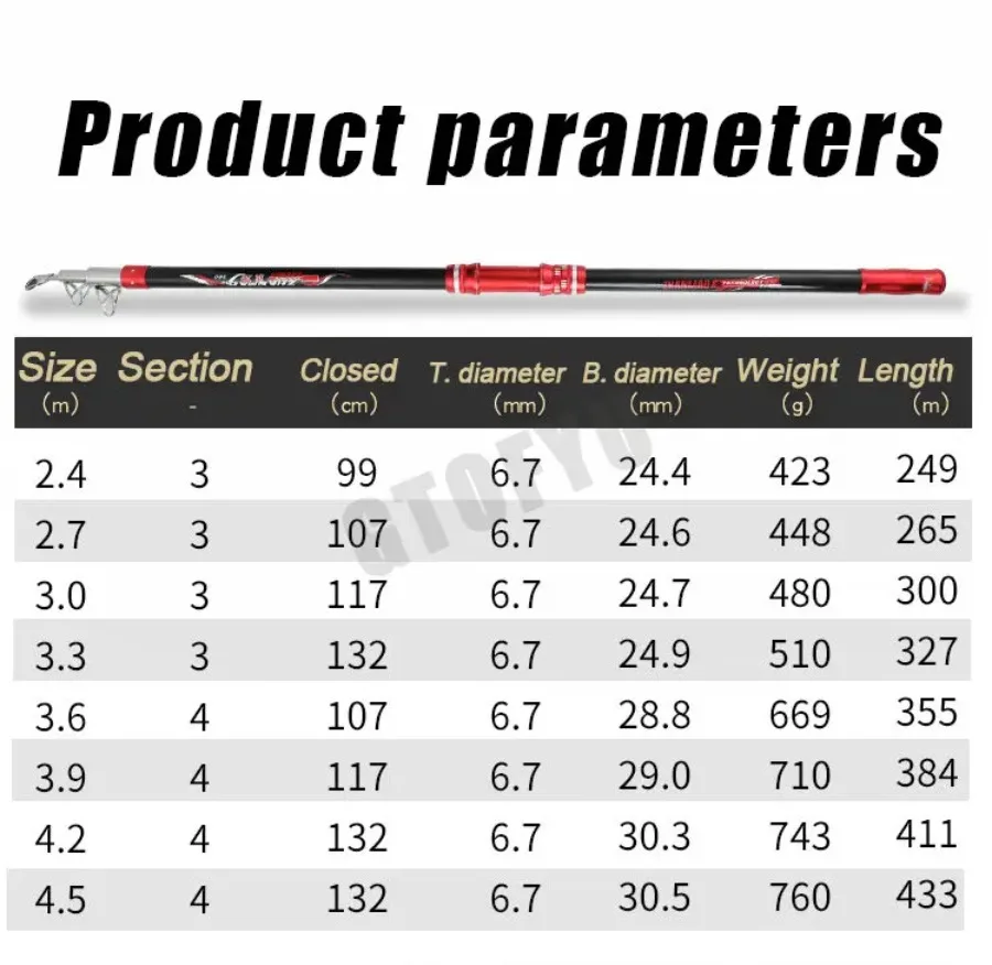 Esta es una caña de pescar muy fuerte, probada con una fuerza de tracción de más de 50 kg, adecuada para caña de pescar de largo alcance de 100 M, adecuada para un peso de cebo de 100 a 800 g, utilizando material de carbono de 5 capas de altísima calidad, adecuada para pescar peces grandes., Barco de pesca marítimo, pesca en playa, rocas, esta es una caña muy popular.【MATERIAL DE FIBRA DE CARBONO】 Esta caña de pescar está hecha de fibra de carbono, resistente y duradera. Adecuado para tiros largos y pesca grande.【DISEÑADO PARA PESCOS GRANDES】 El material de fibra de alta densidad hace que la caña de pescar sea fuerte y fuerte.Audaz la primera parte para evitar roturas.Por lo tanto, es muy adecuado para capturar peces grandes, adecuado para pescar en barco en el mar.【FÁCIL DE transportar】 4-5 secciones son telescópicas y la longitud plegada es inferior a 120 CM, lo cual es fácil de transportar.【MEJOR ELECCIÓN DE REGALO】 El poste tiene una apariencia elegante y una mano de obra exquisita, lo que lo convierte en un gran regalo para padre, esposo o novio en 2024.Si la varilla se daña debido al envío, ofrecemos reemplazo gratuito.