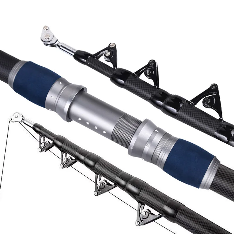 Caña de pescar de carbono de 4,2 M, 50kg por encima, caña de tiro de larga distancia superdura, barco de mar telescópico, equipo de pesca de muy alta calidad